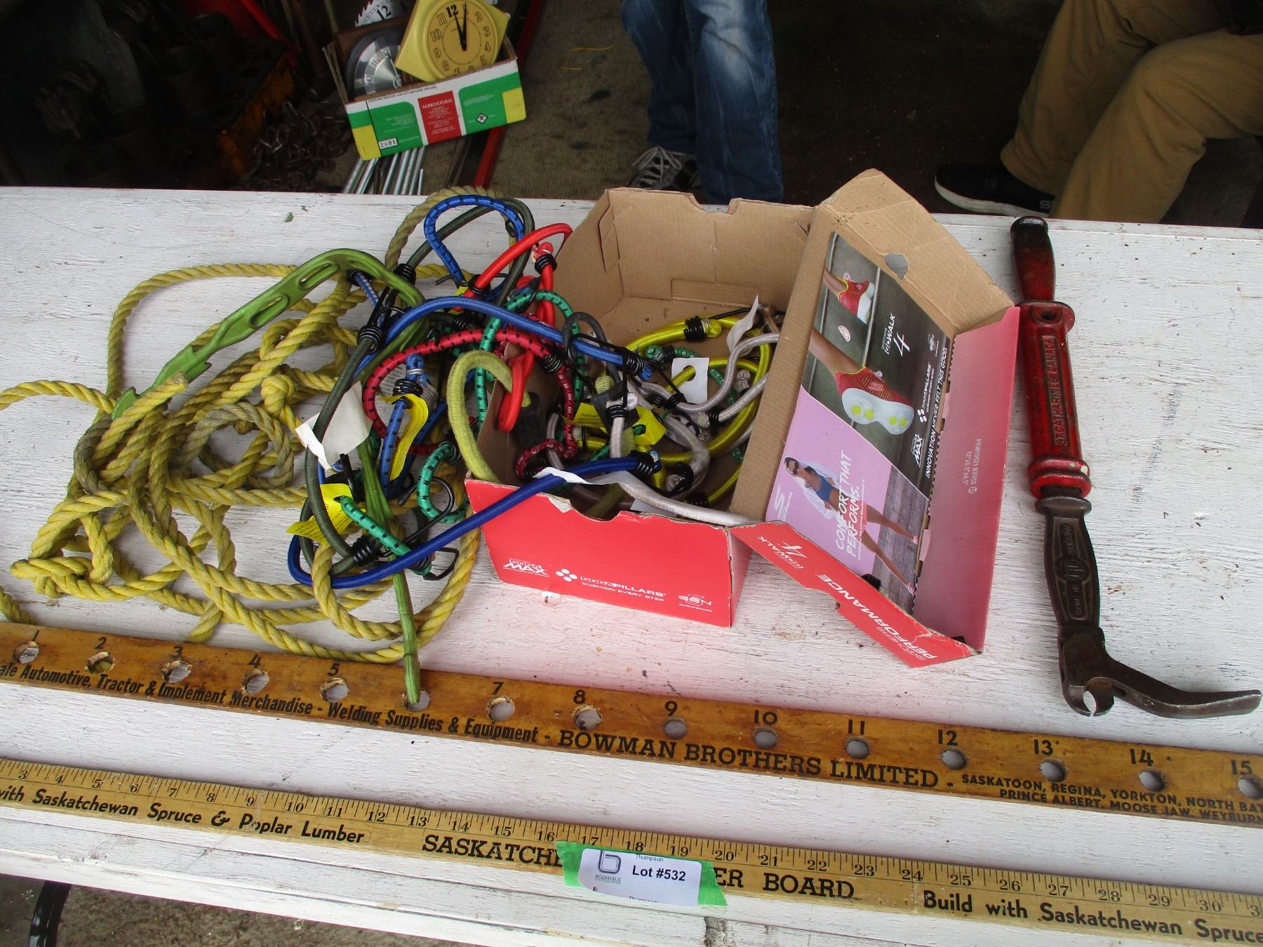 Yard Stick, Nail Puller, Bungee Cords, Rope