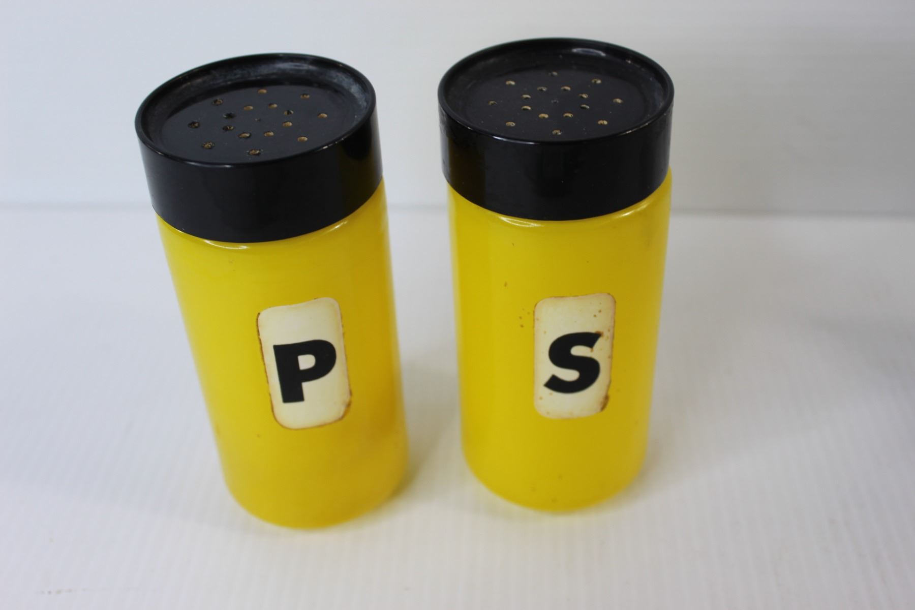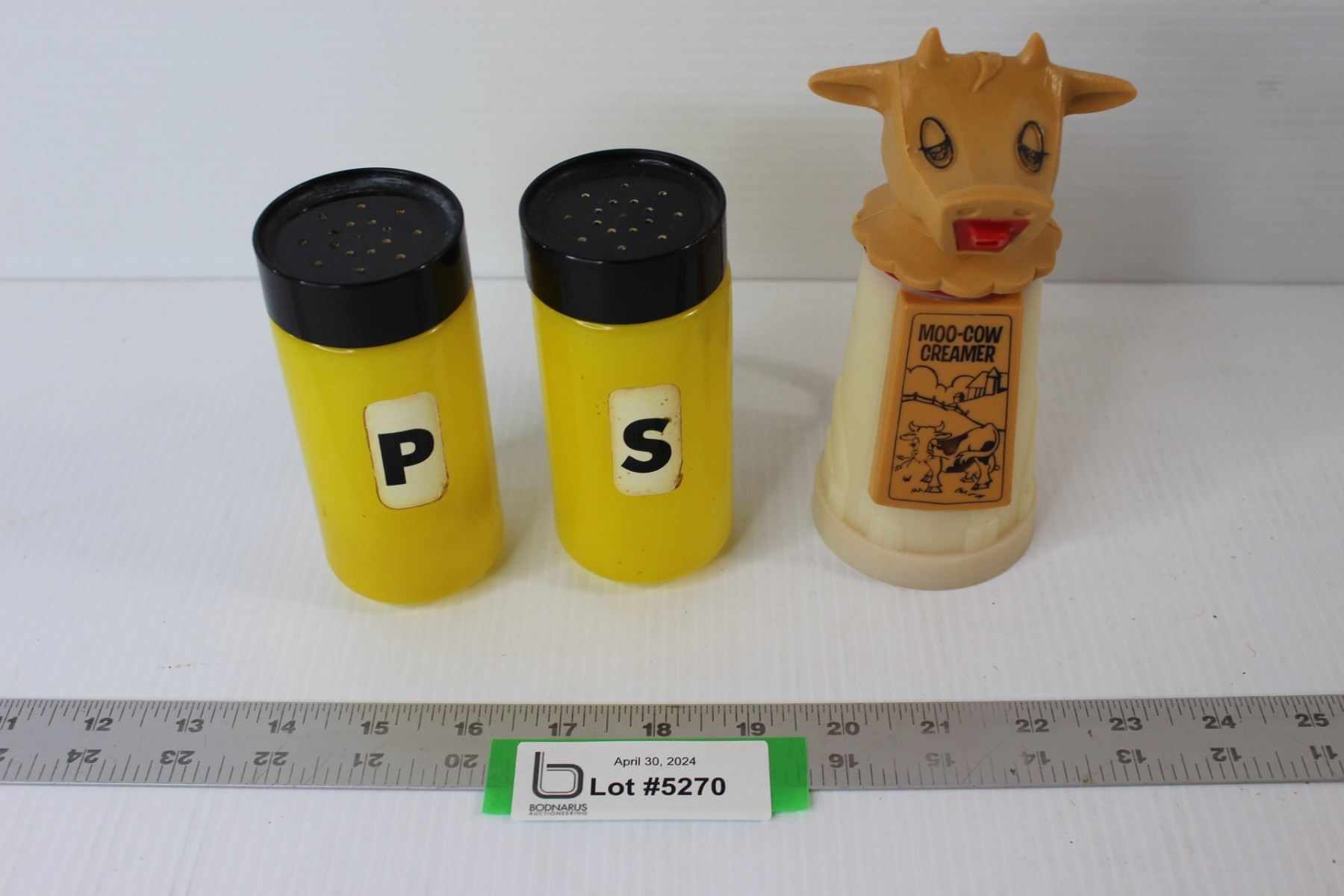 Yellow Glass Salt & Pepper Shakers, Cow Themed Creamer