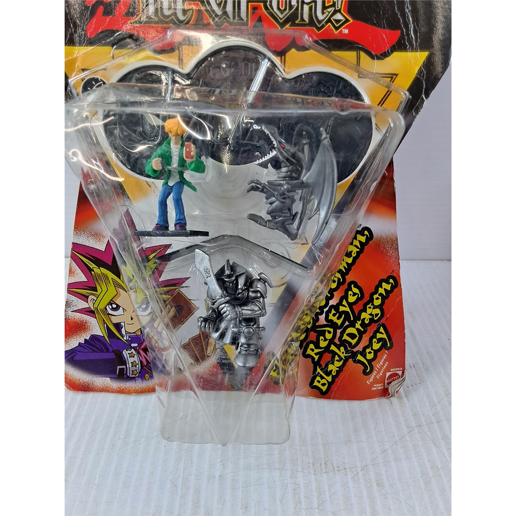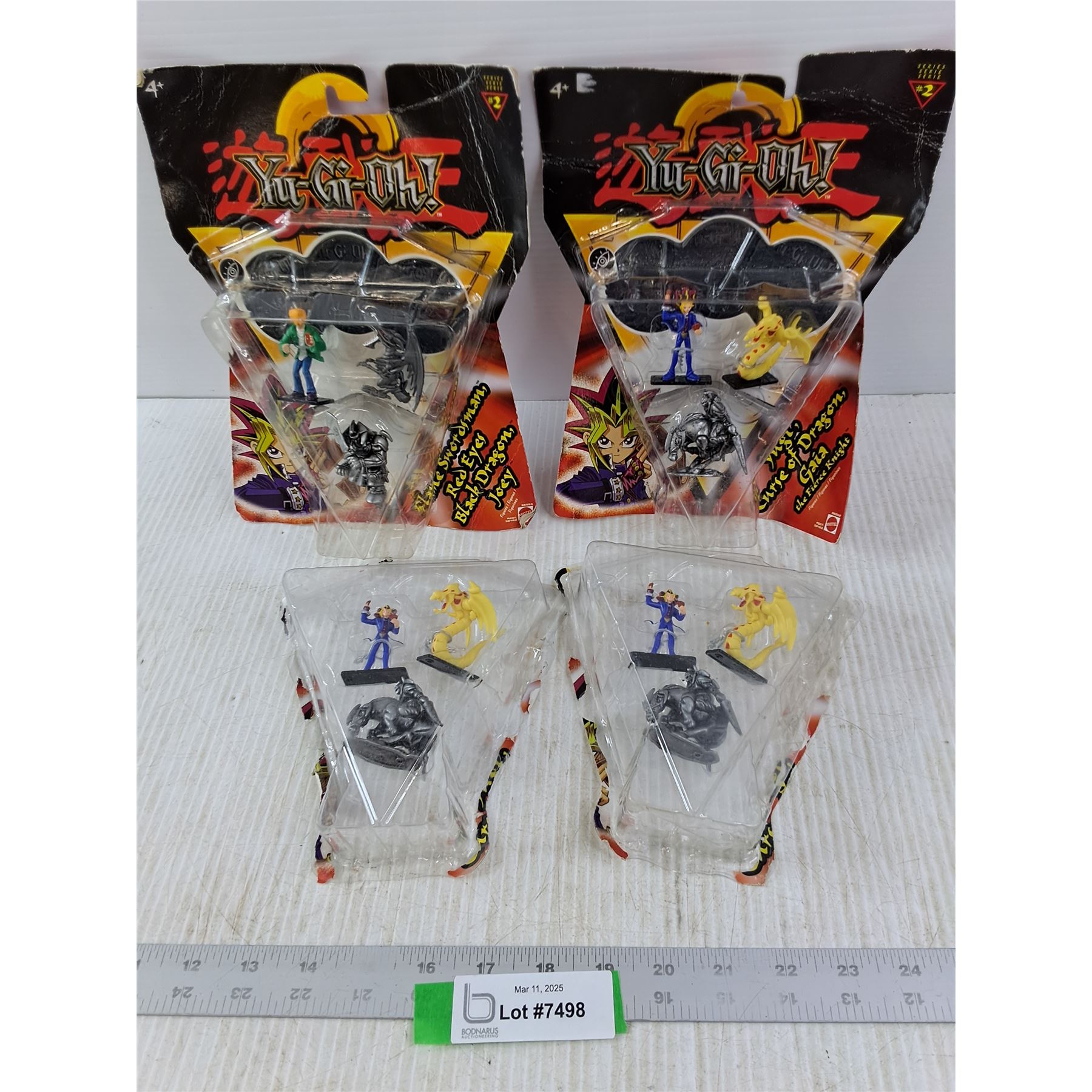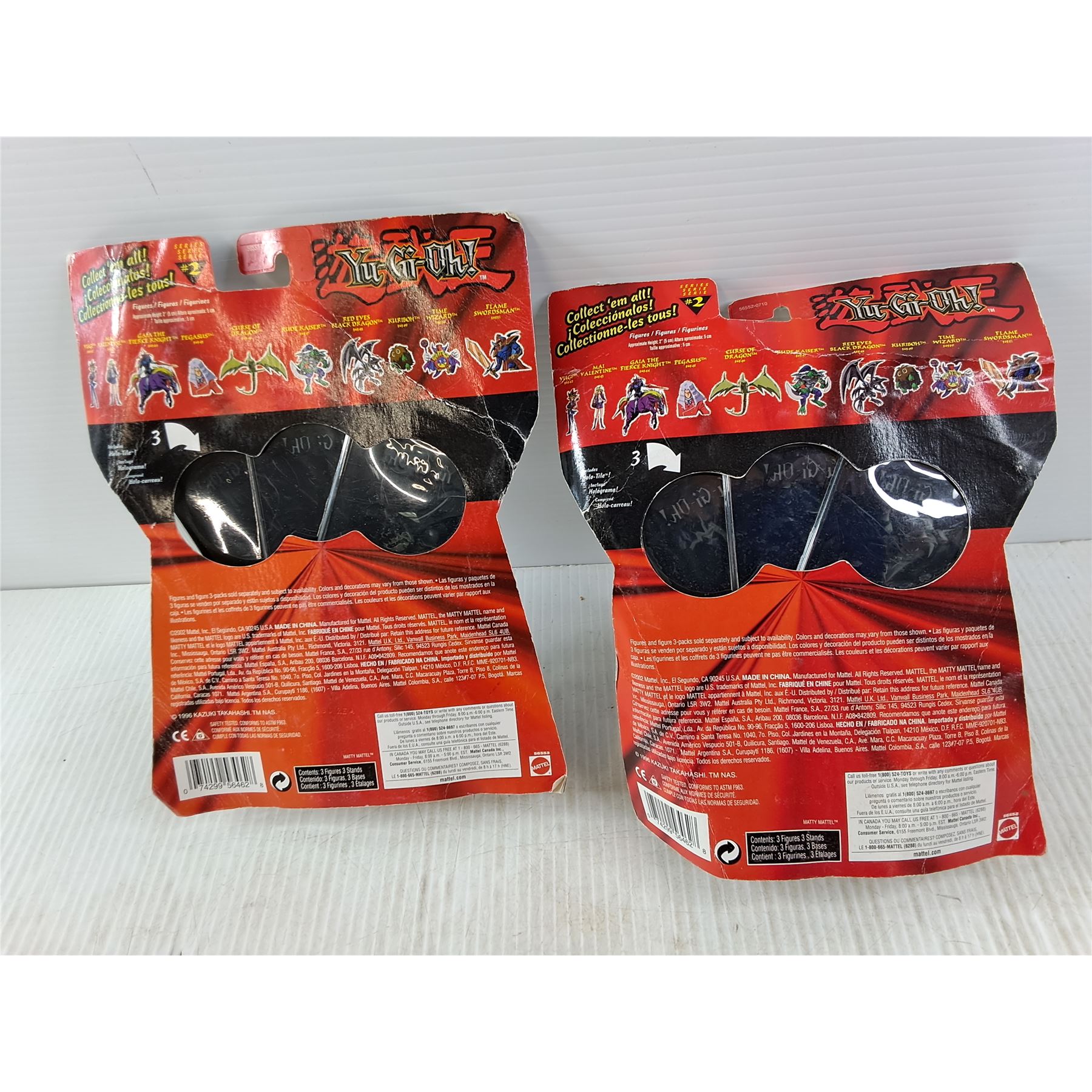4 sets of Yu-gi-oh Figures. Two carded and 2 that have no backing. Cards are in poorer shape as shown.