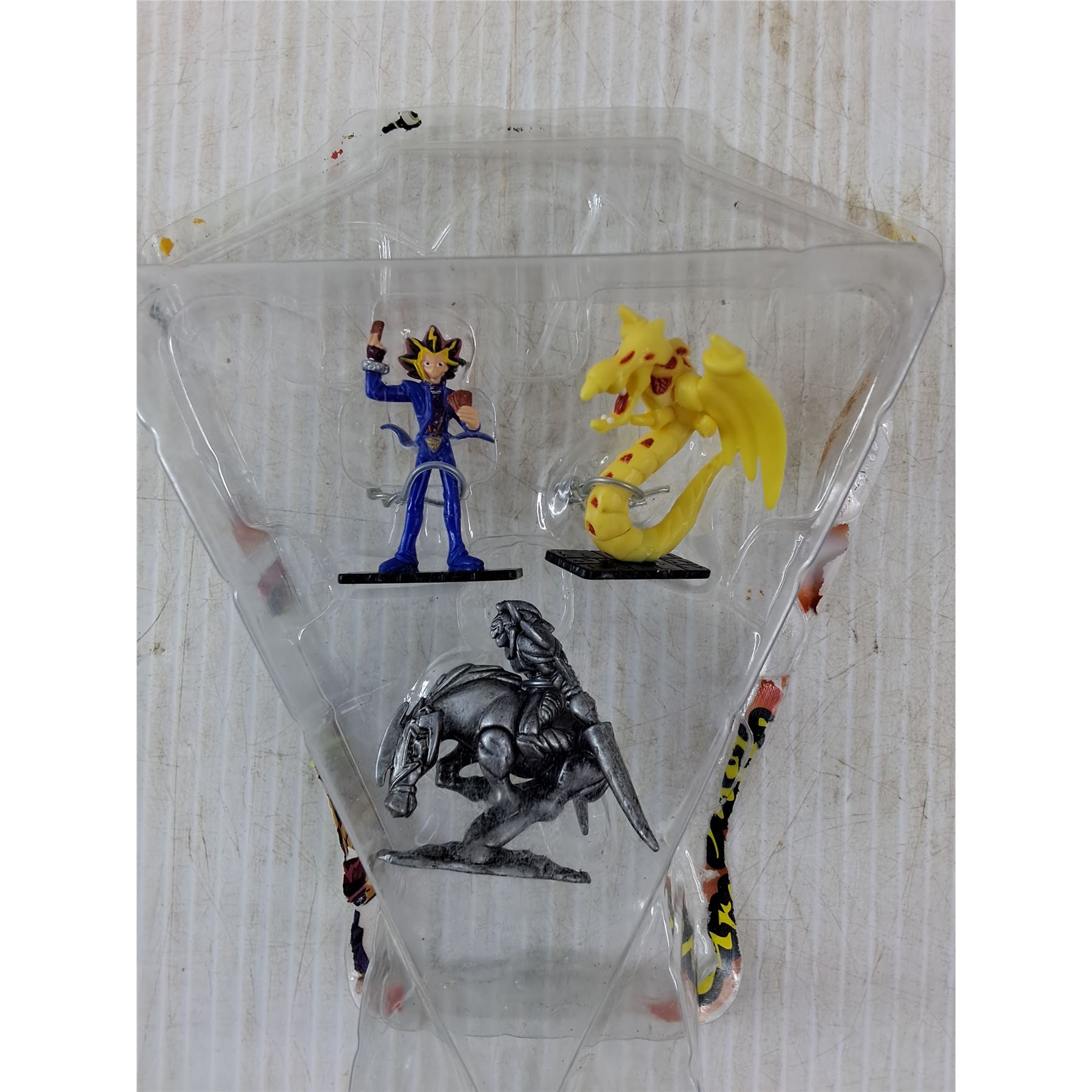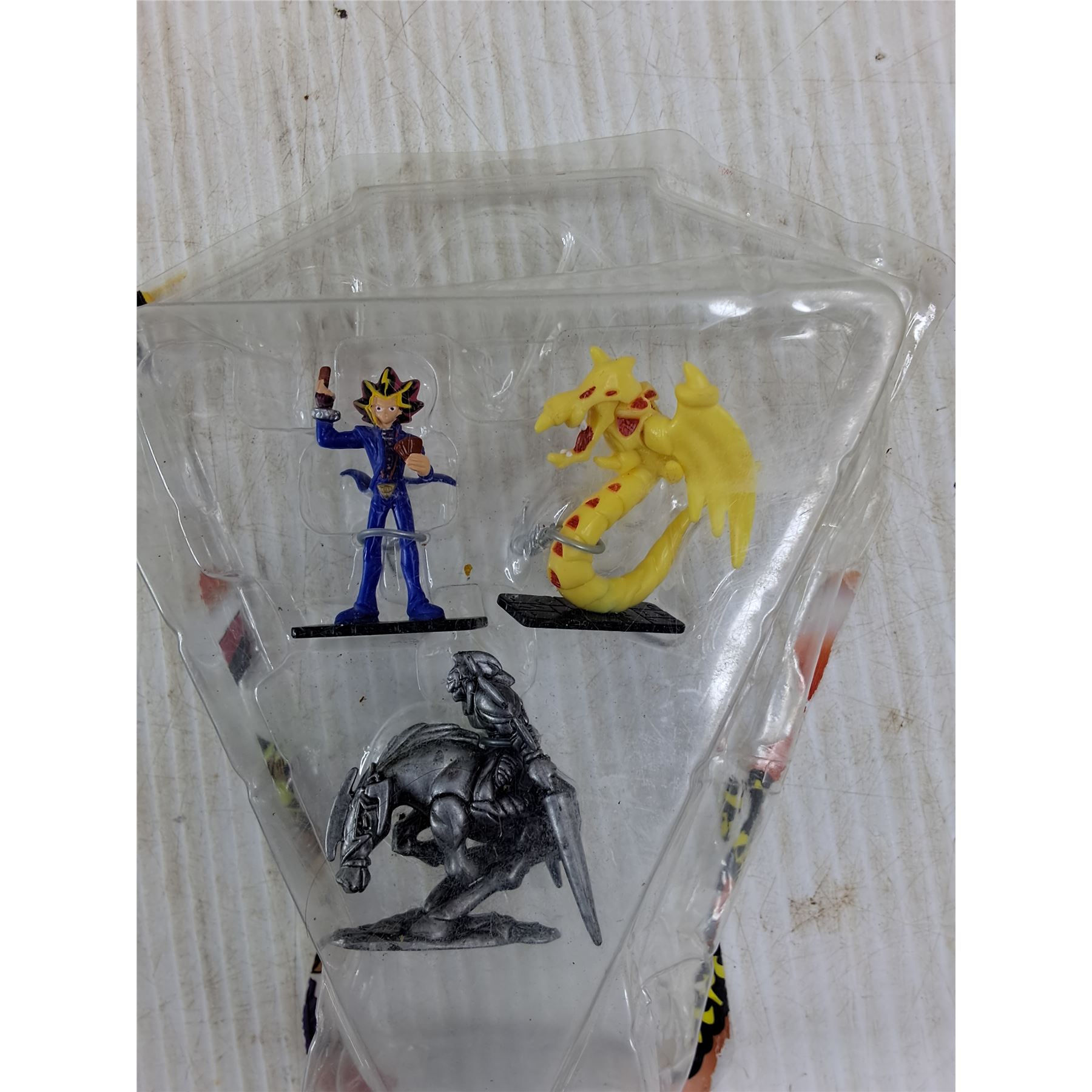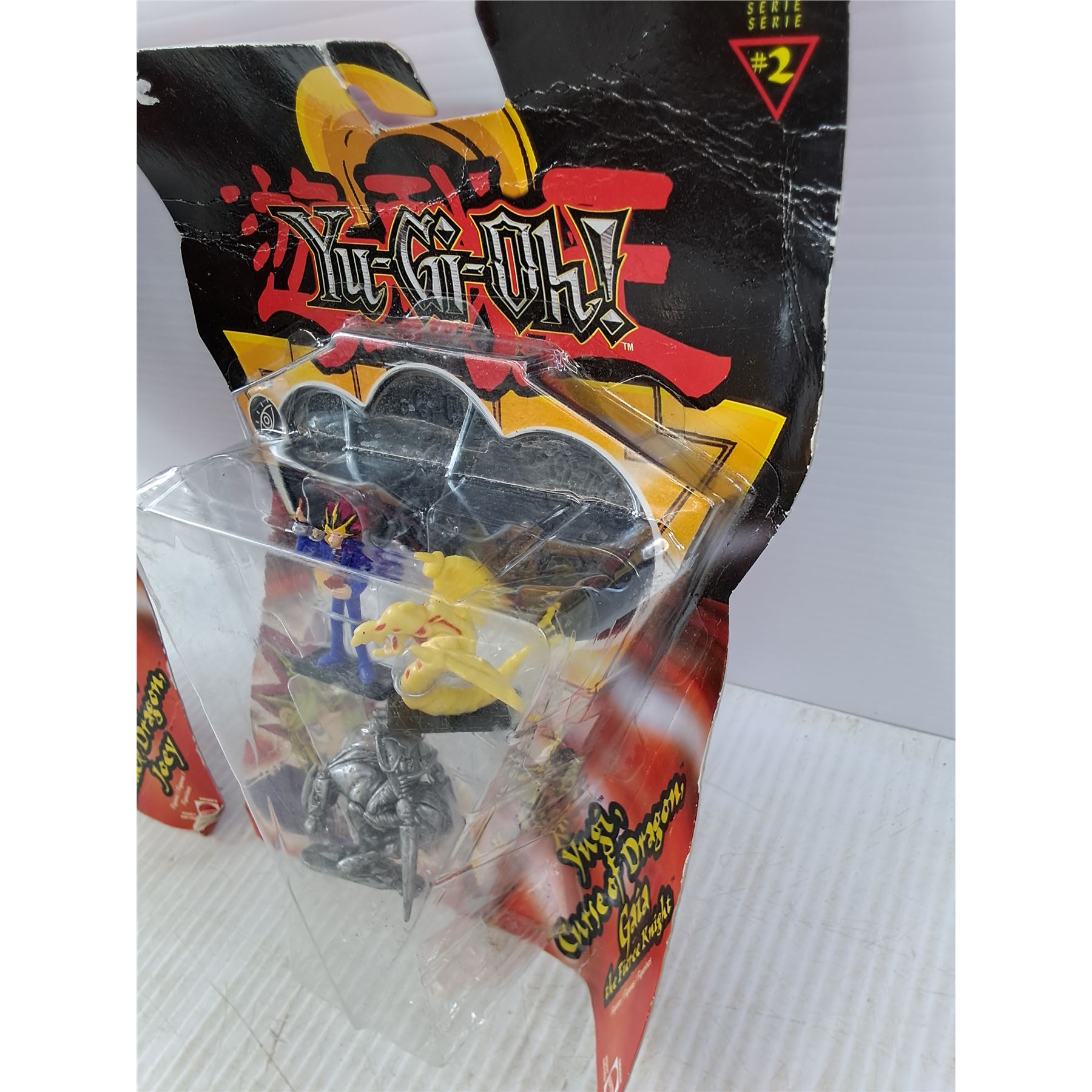 4 sets of Yu-gi-oh Figures. Two carded and 2 that have no backing. Cards are in poorer shape as shown.