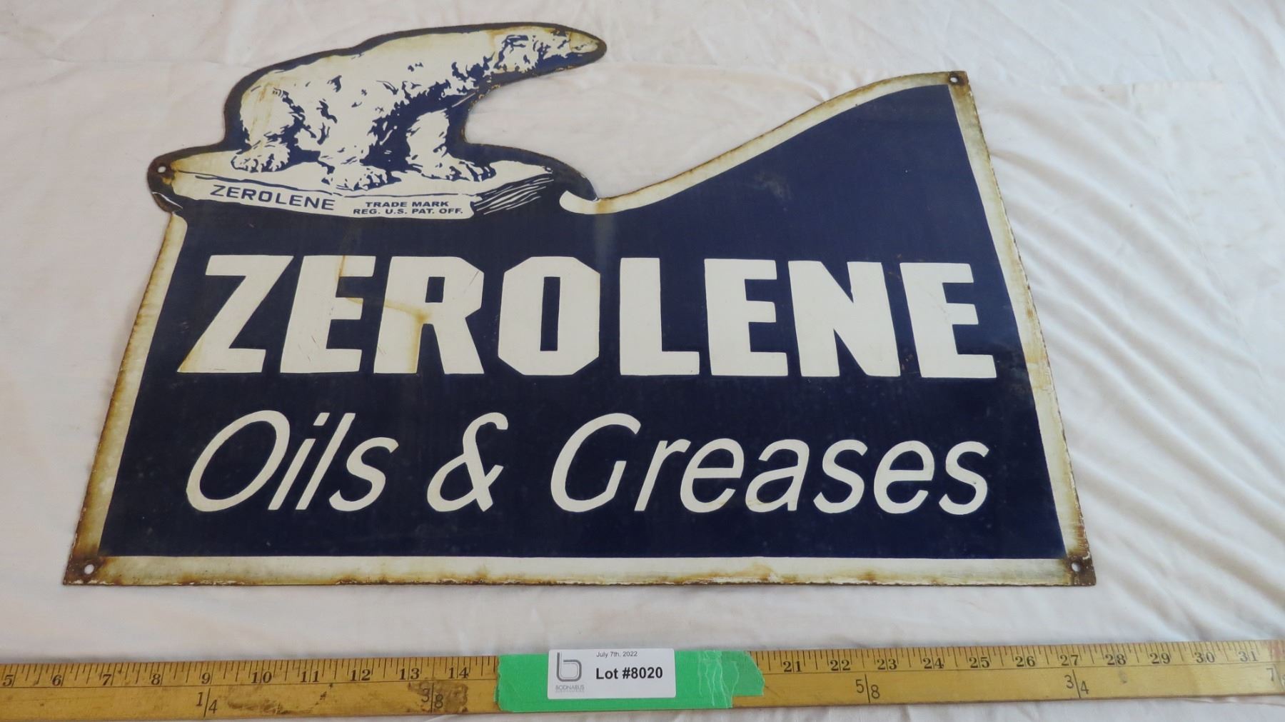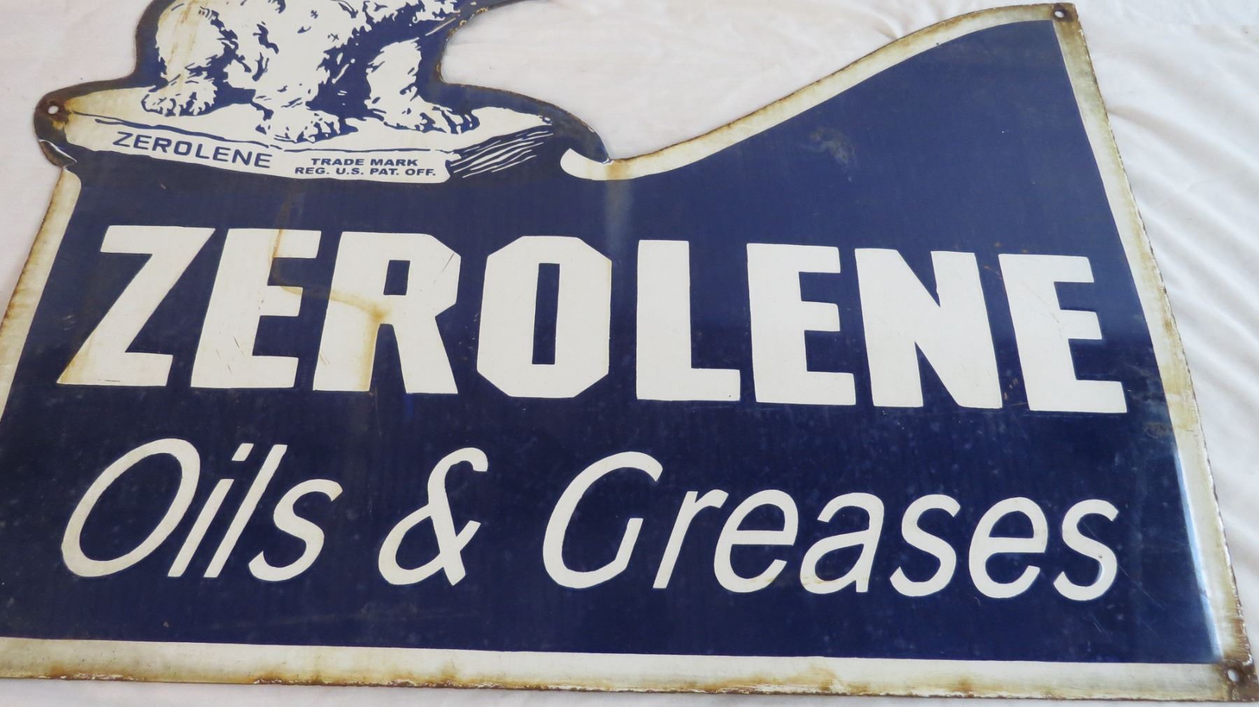Zerolene Oils & Greases - Fantasy porcelain sign (23" long)