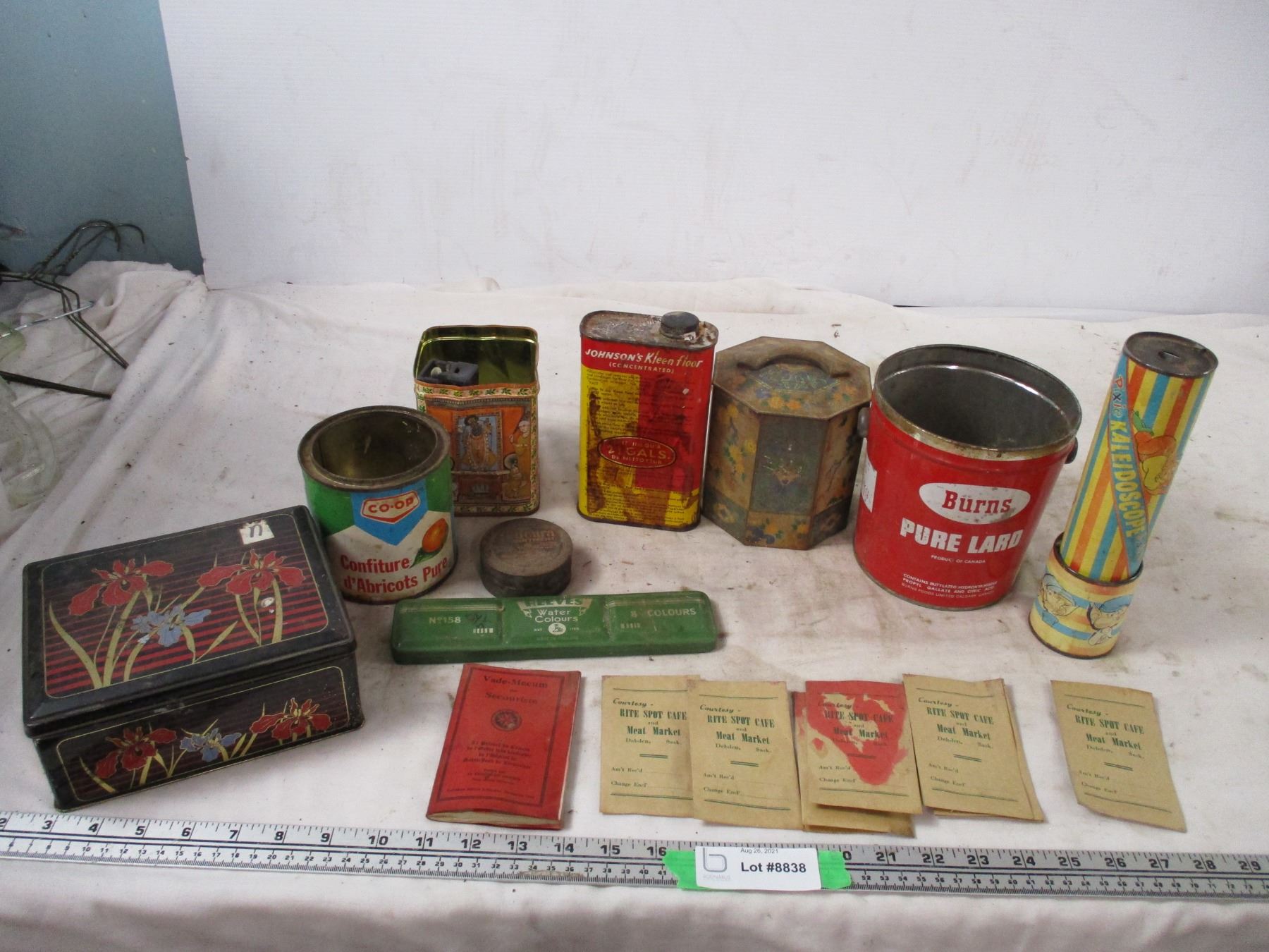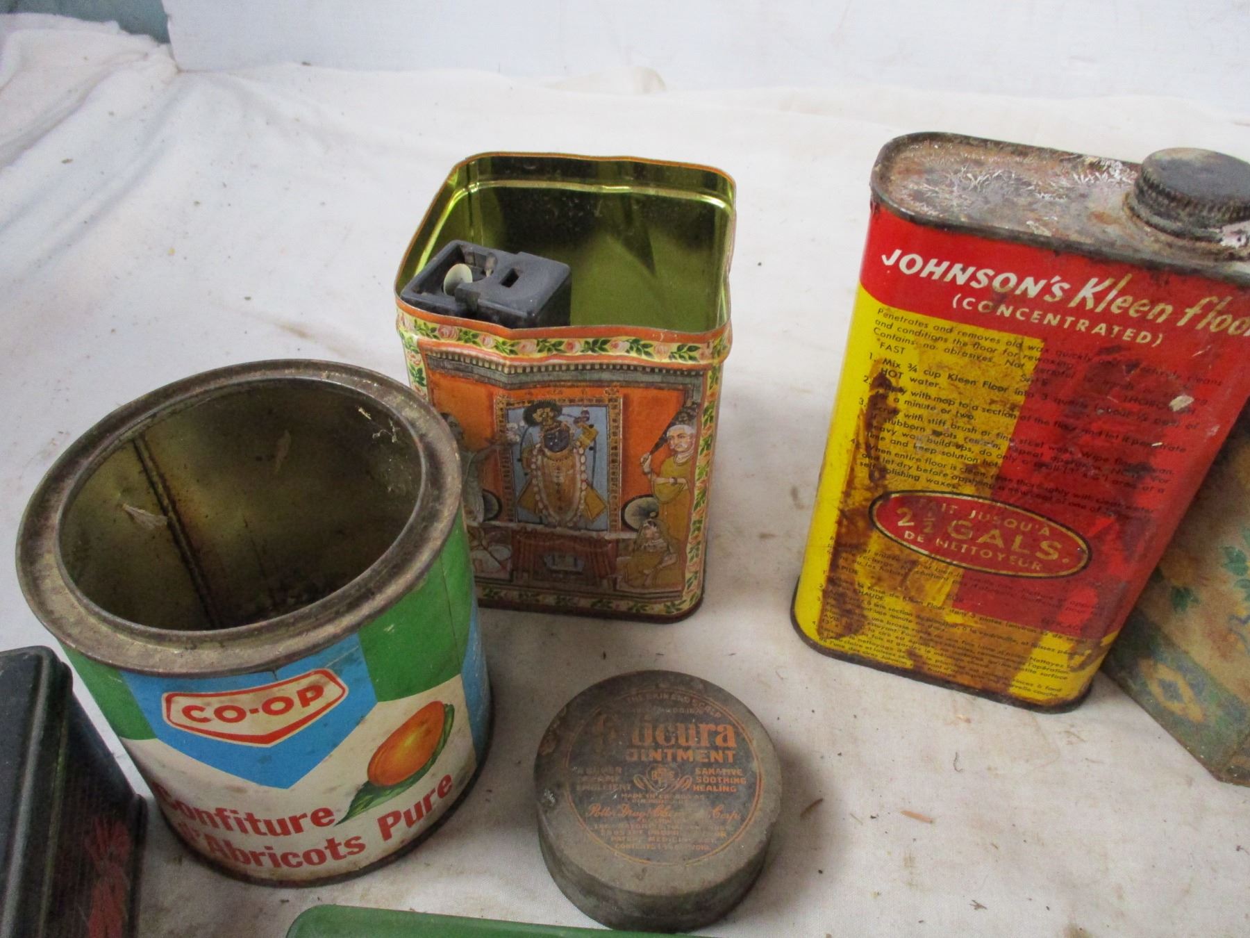 advertising envelopes, tins, misc