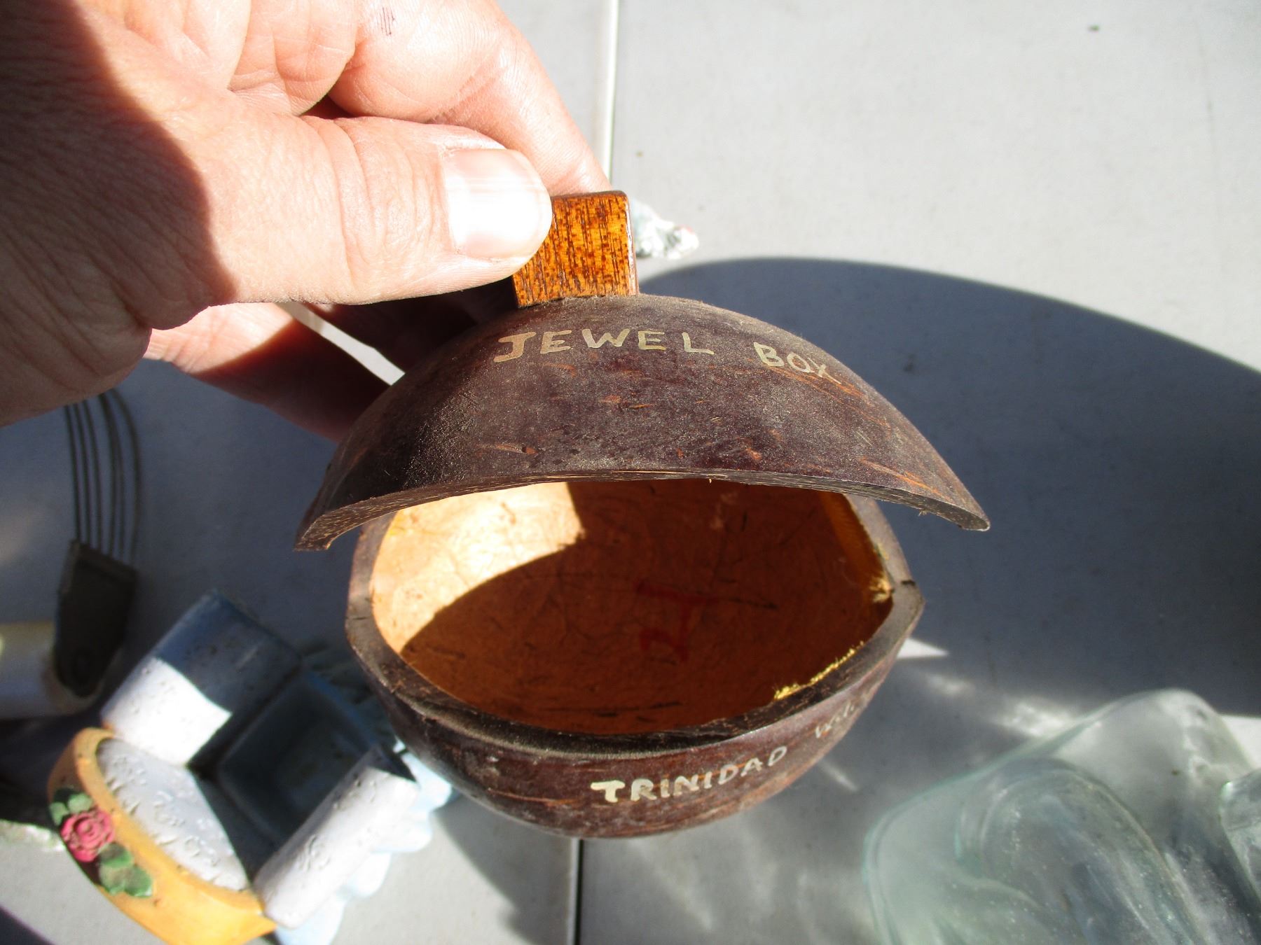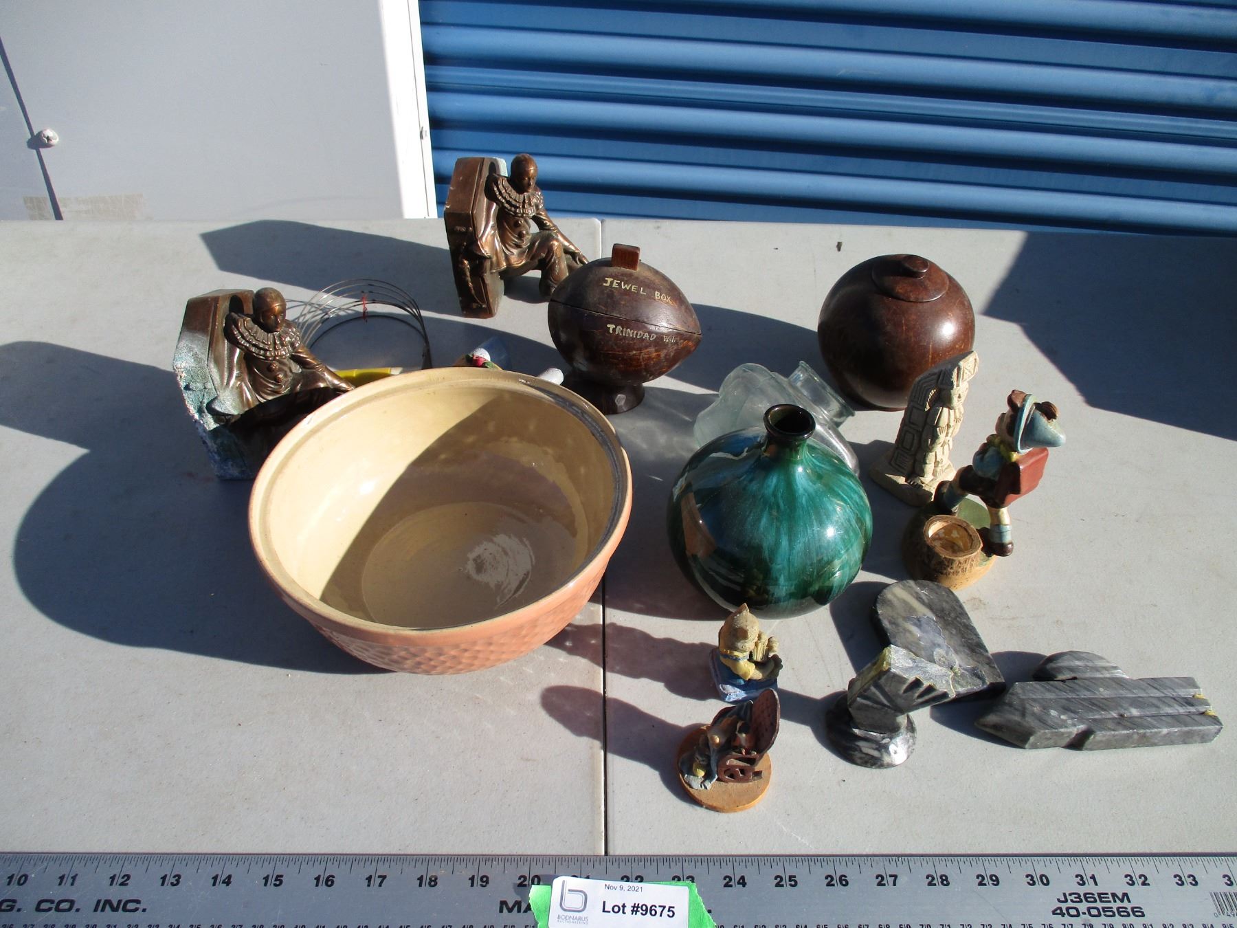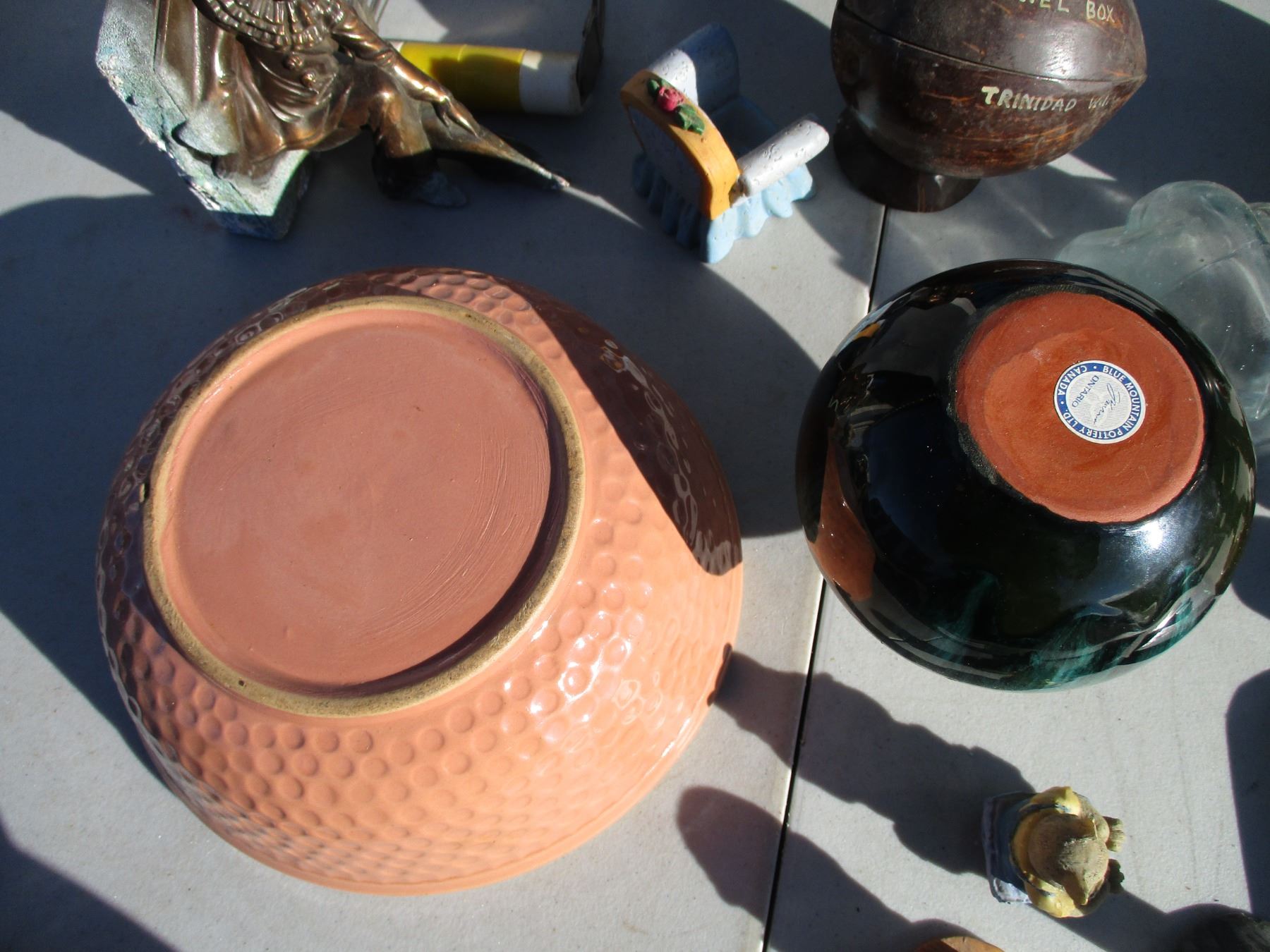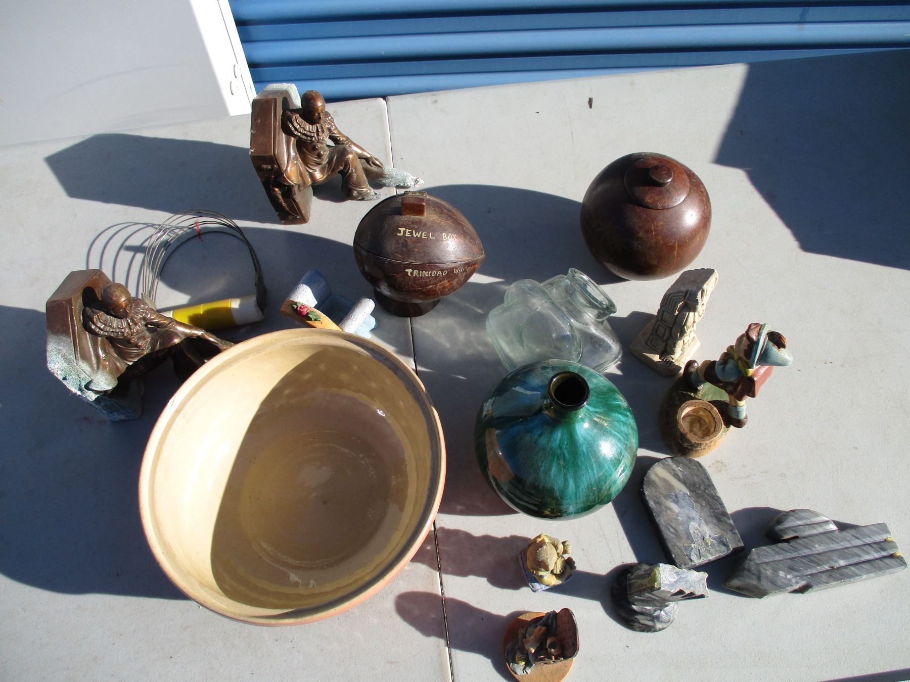 blue mountain vase, jewelery box, figures, misc