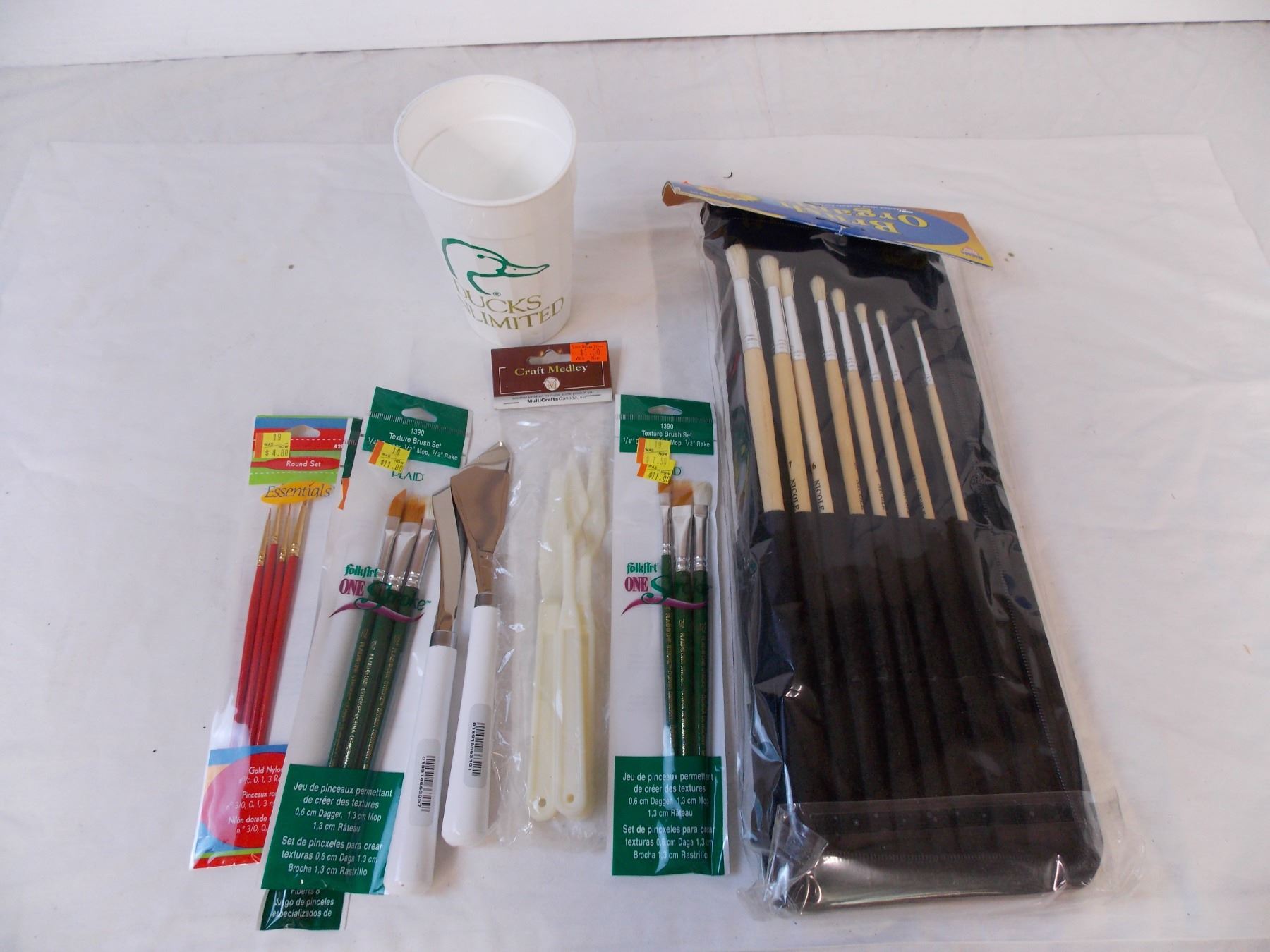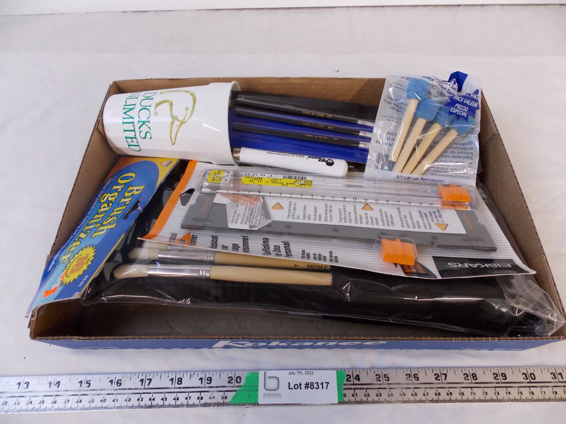 box of paint brushes and painting accessories