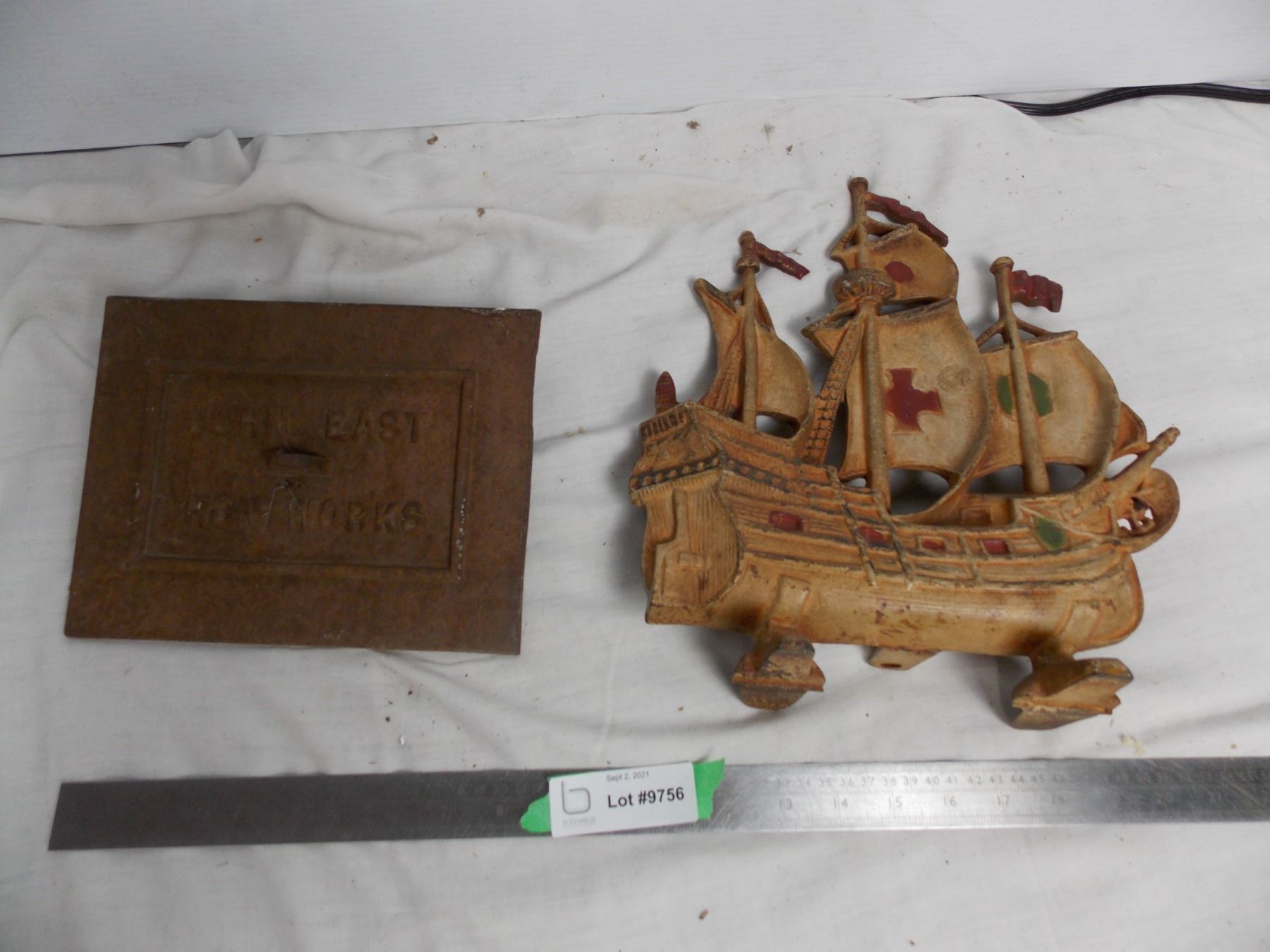 cast iron ship (12" tall) + furnace cover