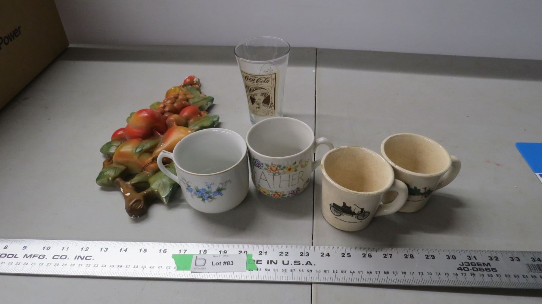 chalkware, coke glass, coffee cups