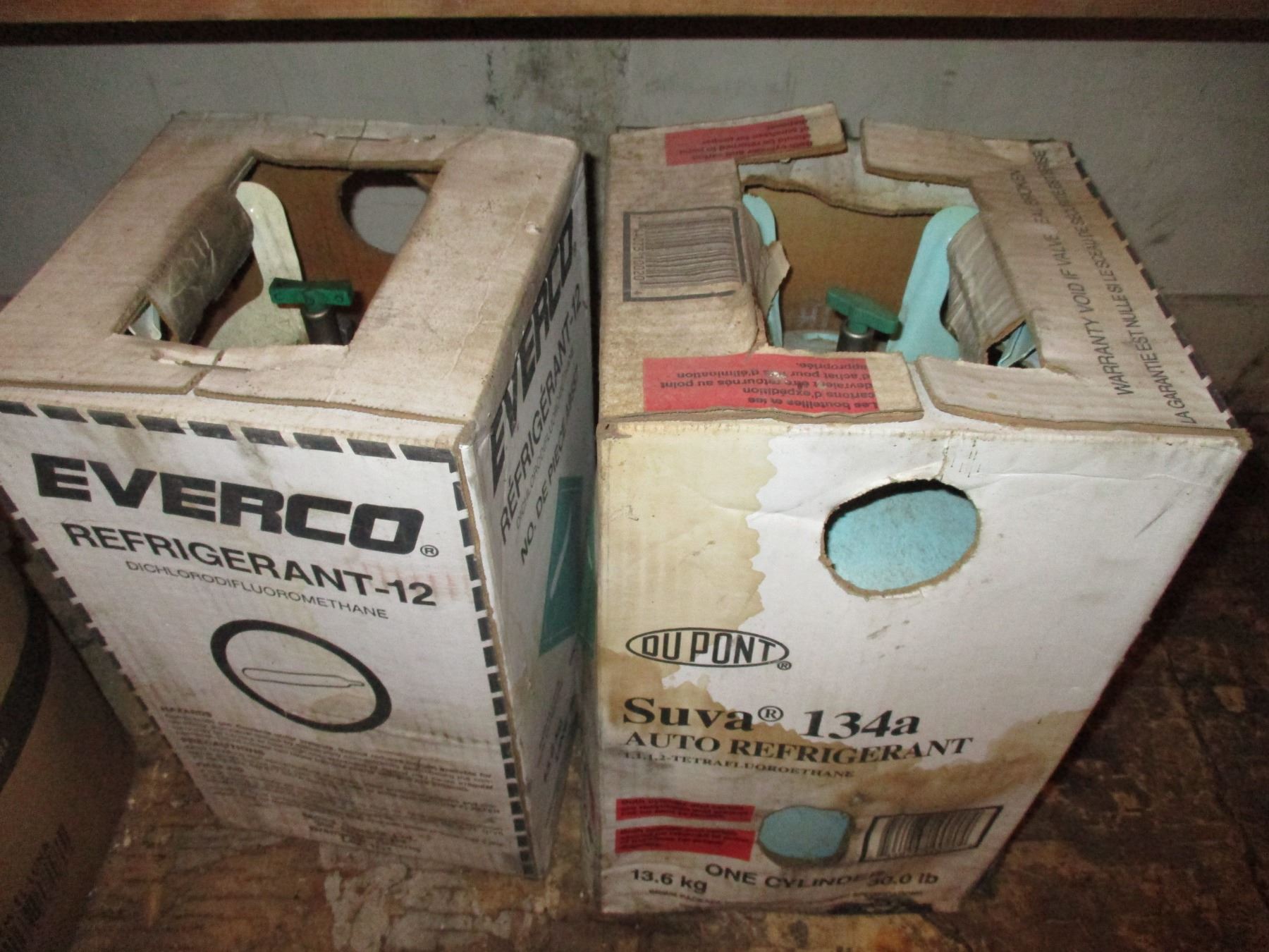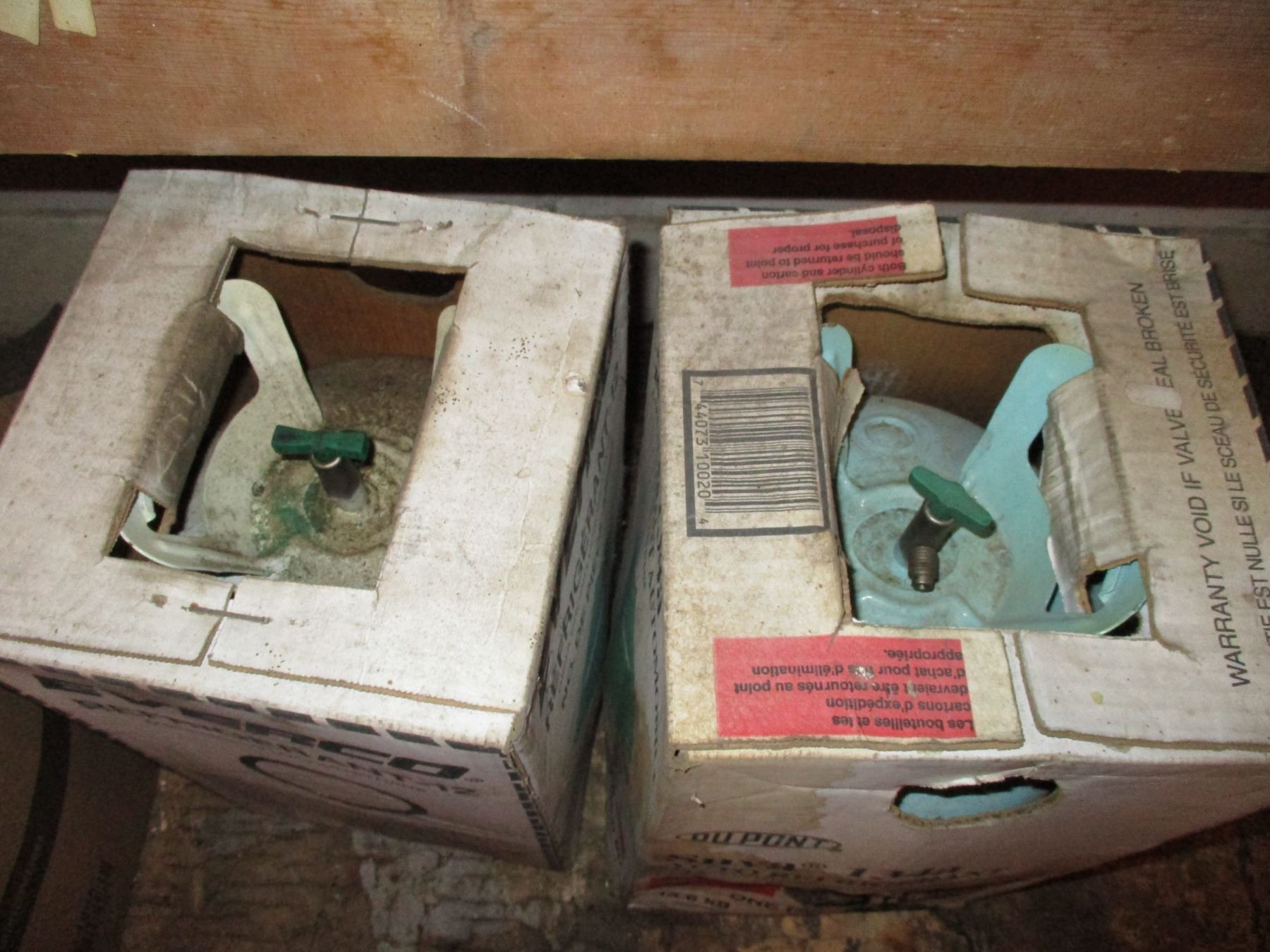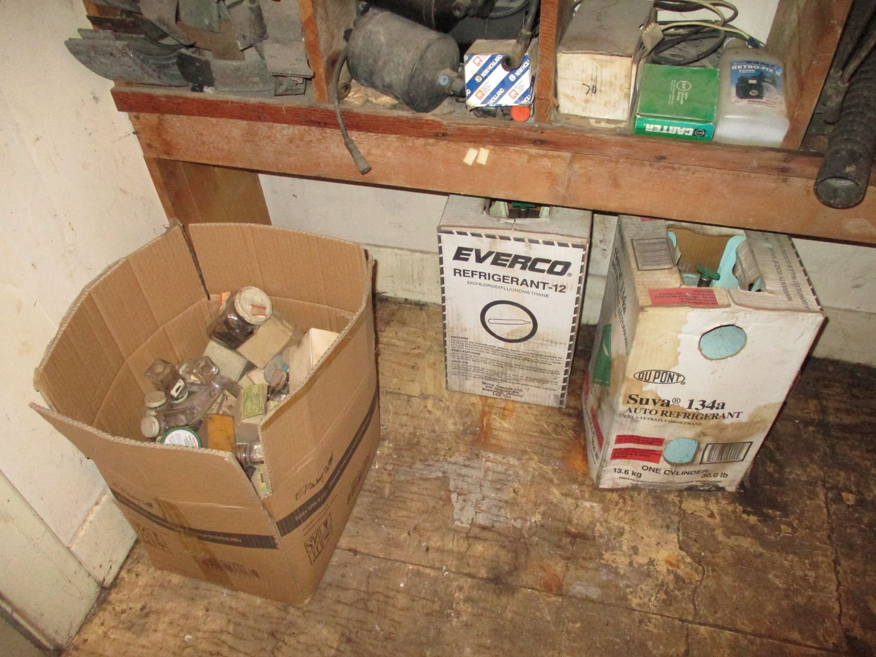 contents of shelf, muffler clamp, filters, refrigerant tank 1/2 full