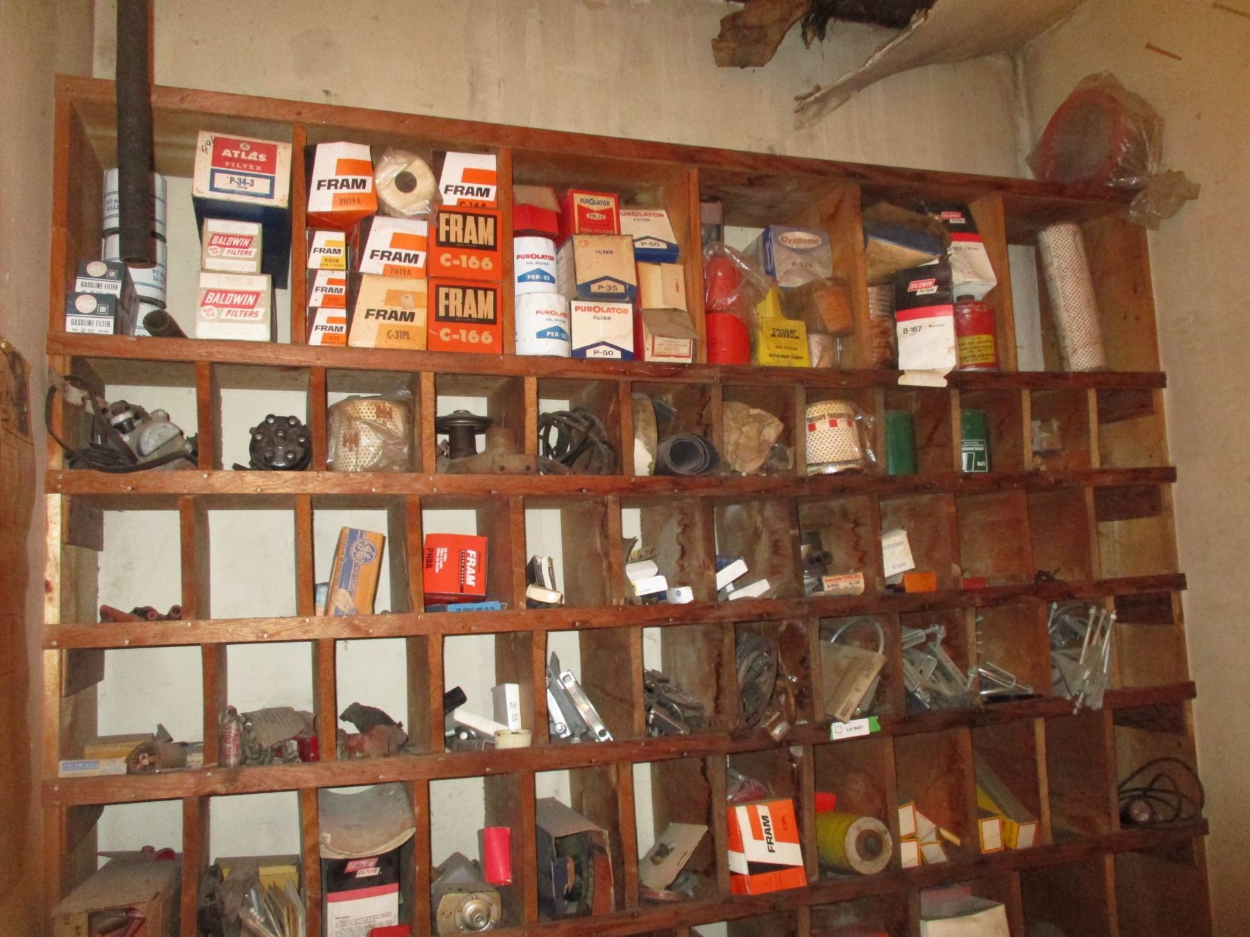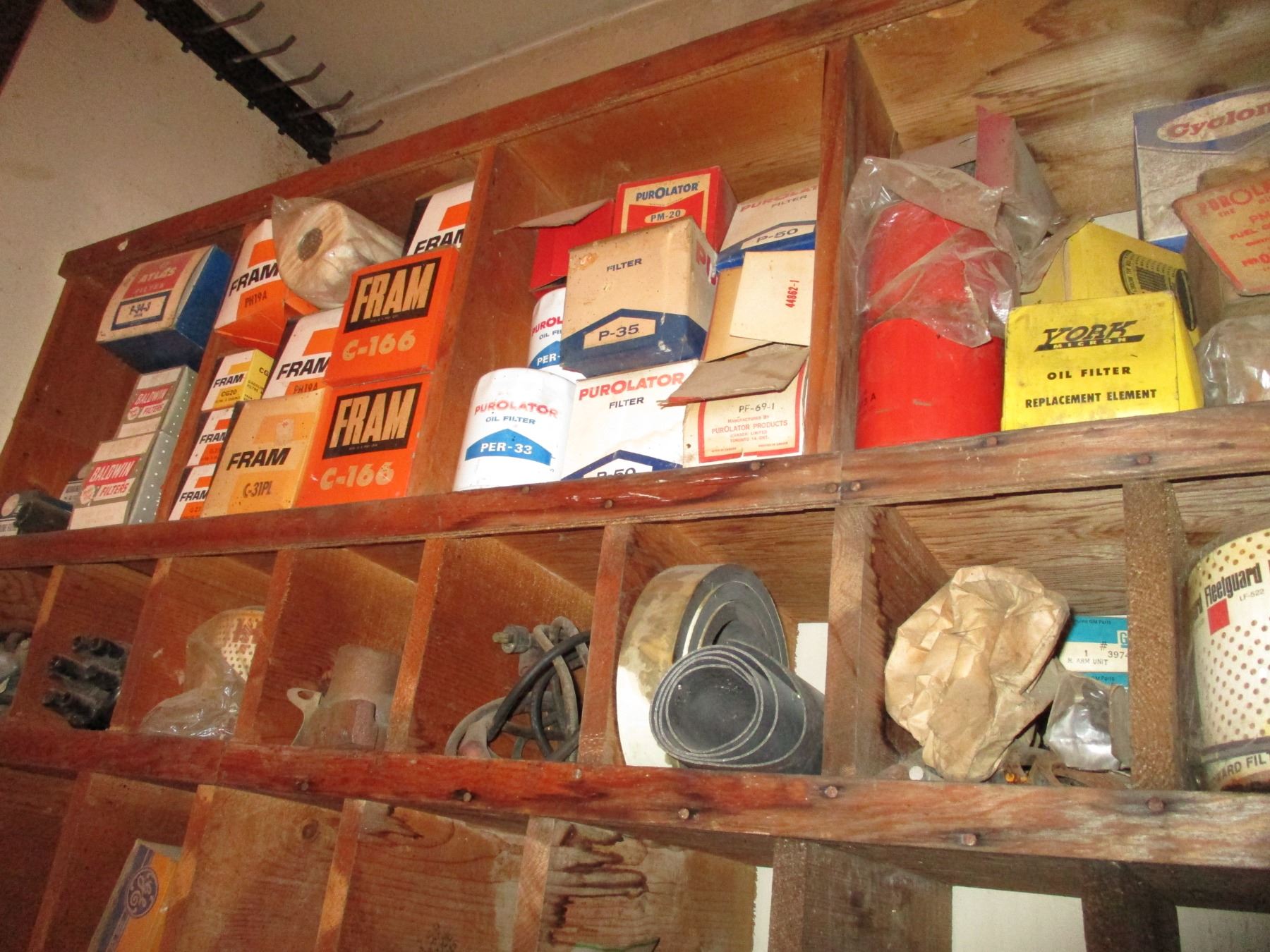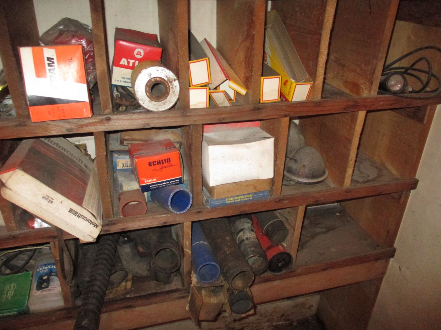 contents of shelf, muffler clamp, filters, refrigerant tank 1/2 full