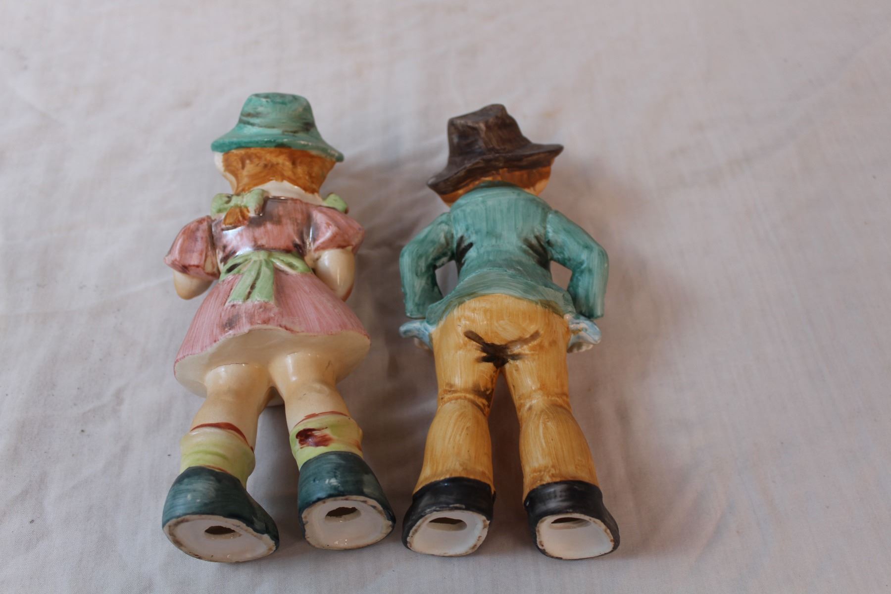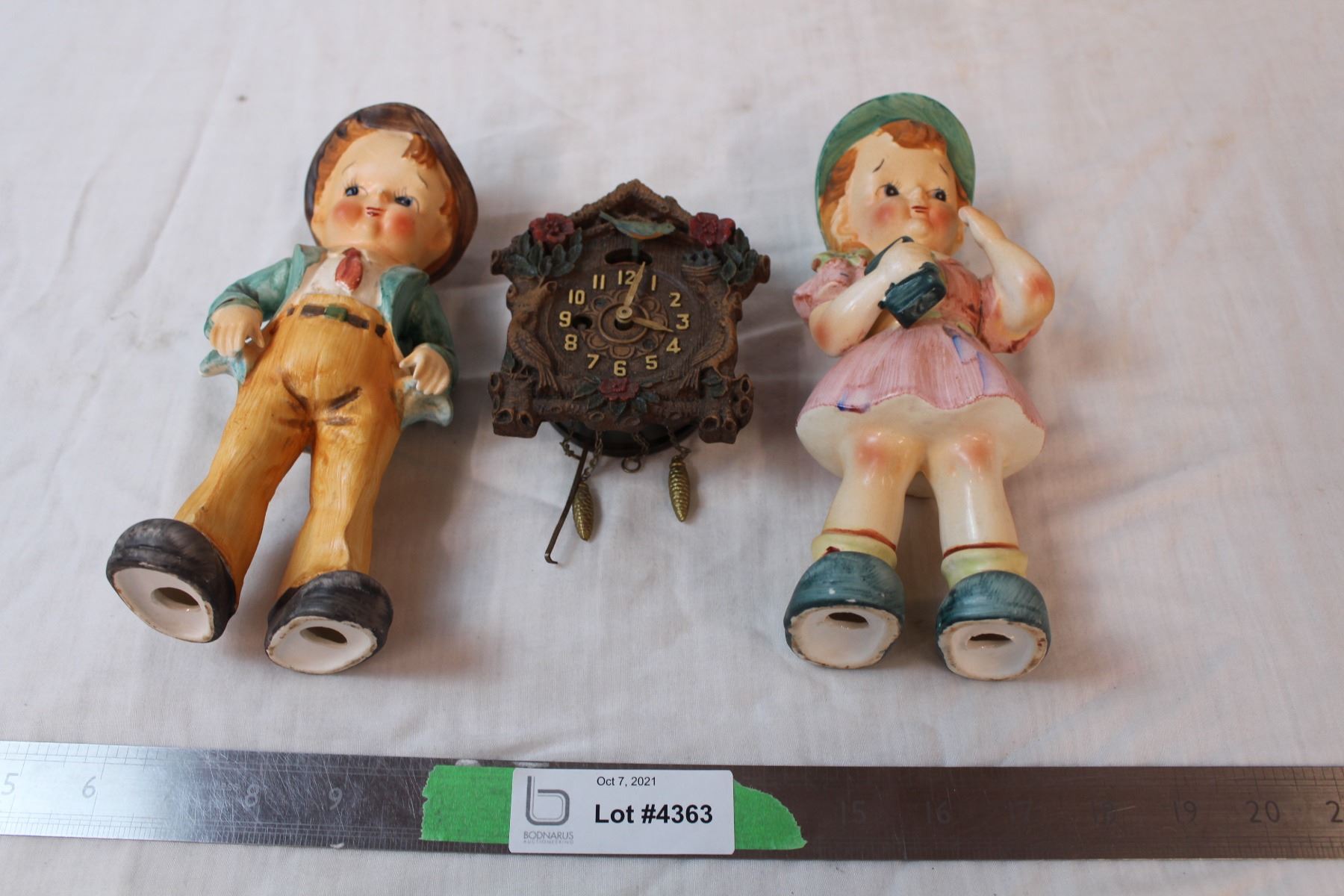 coo koo clock ornament, two vintage handpainted ceramic figures