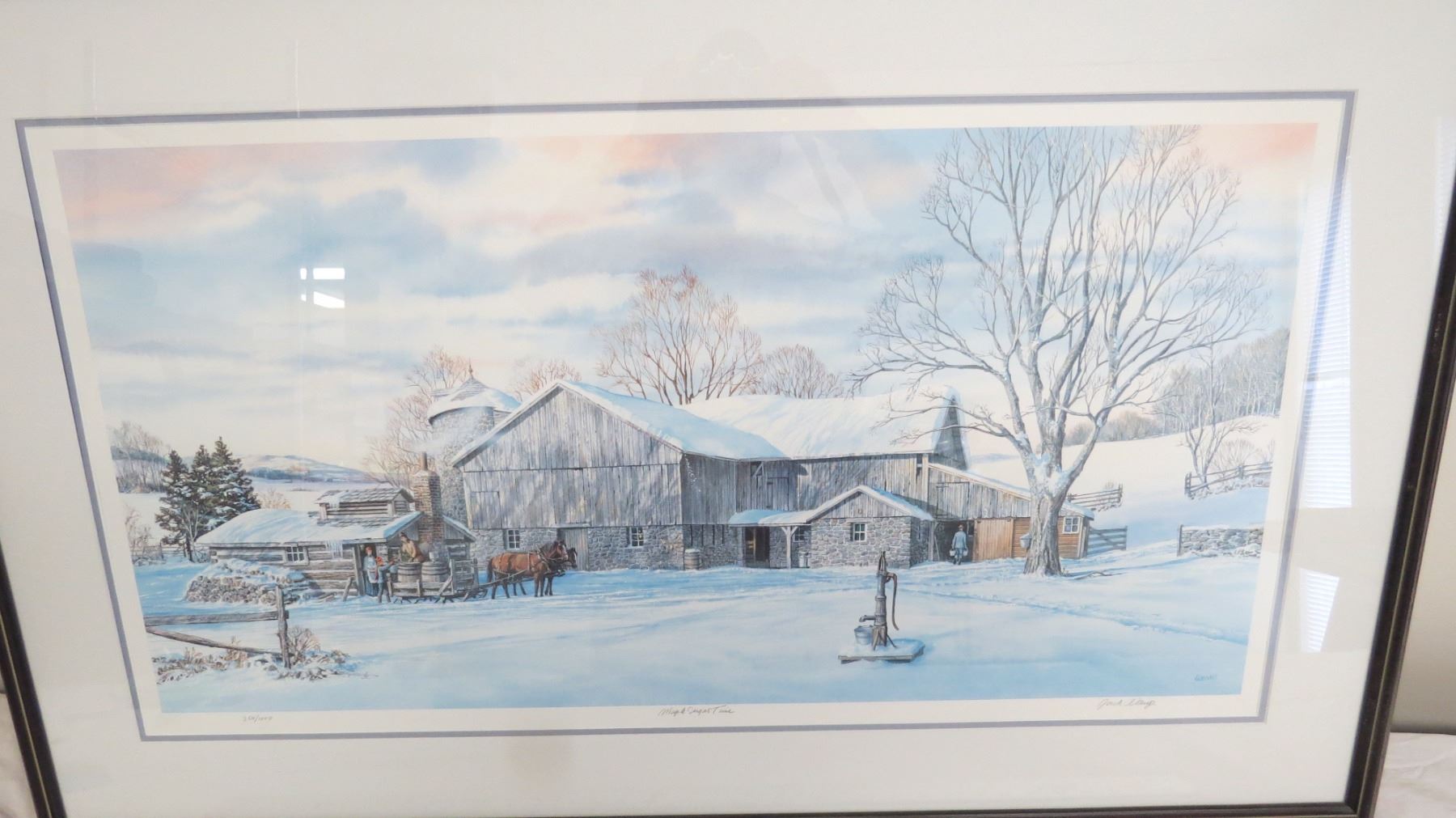 ducks unlimited print by jack wemp "maple sugartime" 27x43 - framed