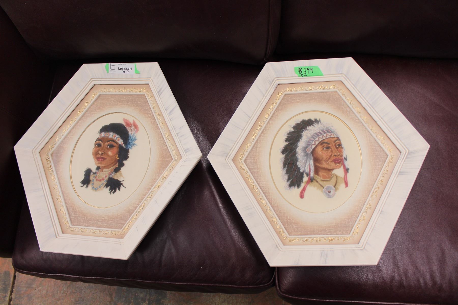 *framed crosstitch “Princess Starlight” and “Chief White Feathers” by Joyce Dielschneider