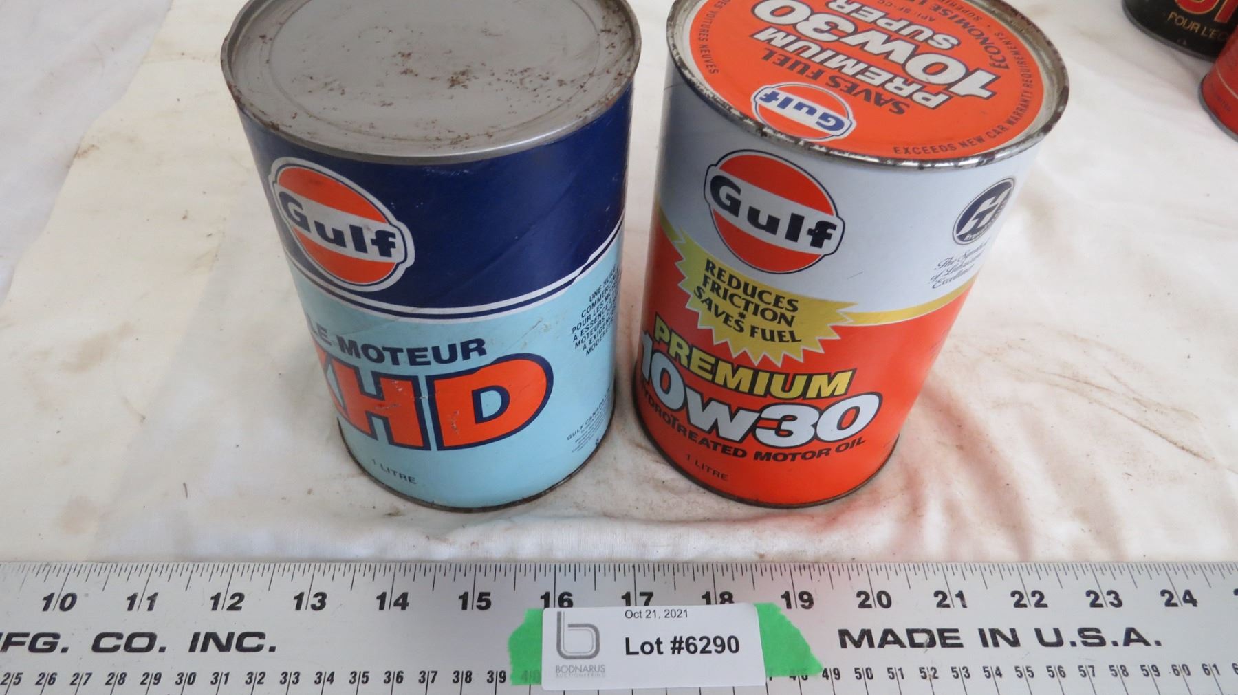 gulf 10w30 cardboard can (full) plus gulf XHD motor oil cardboard can (empty) 1 litre