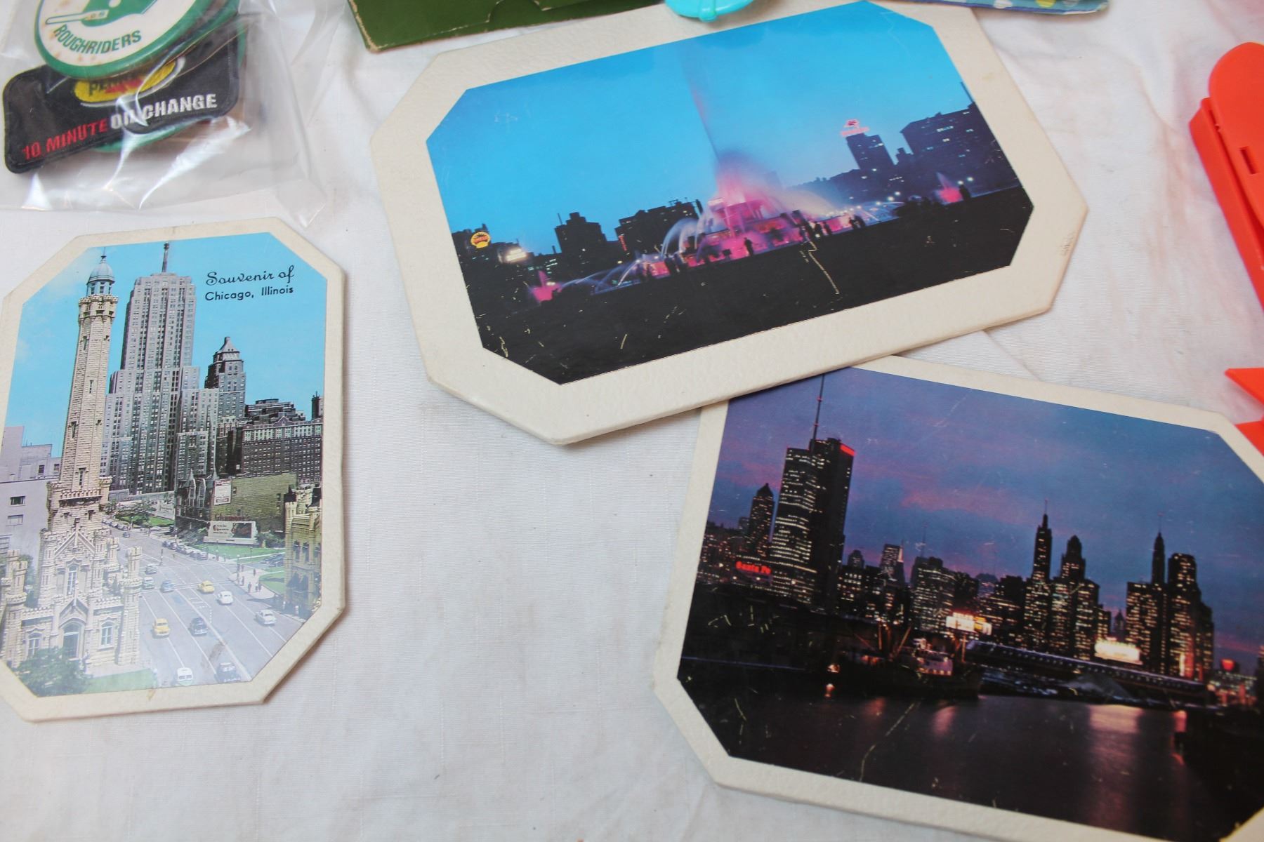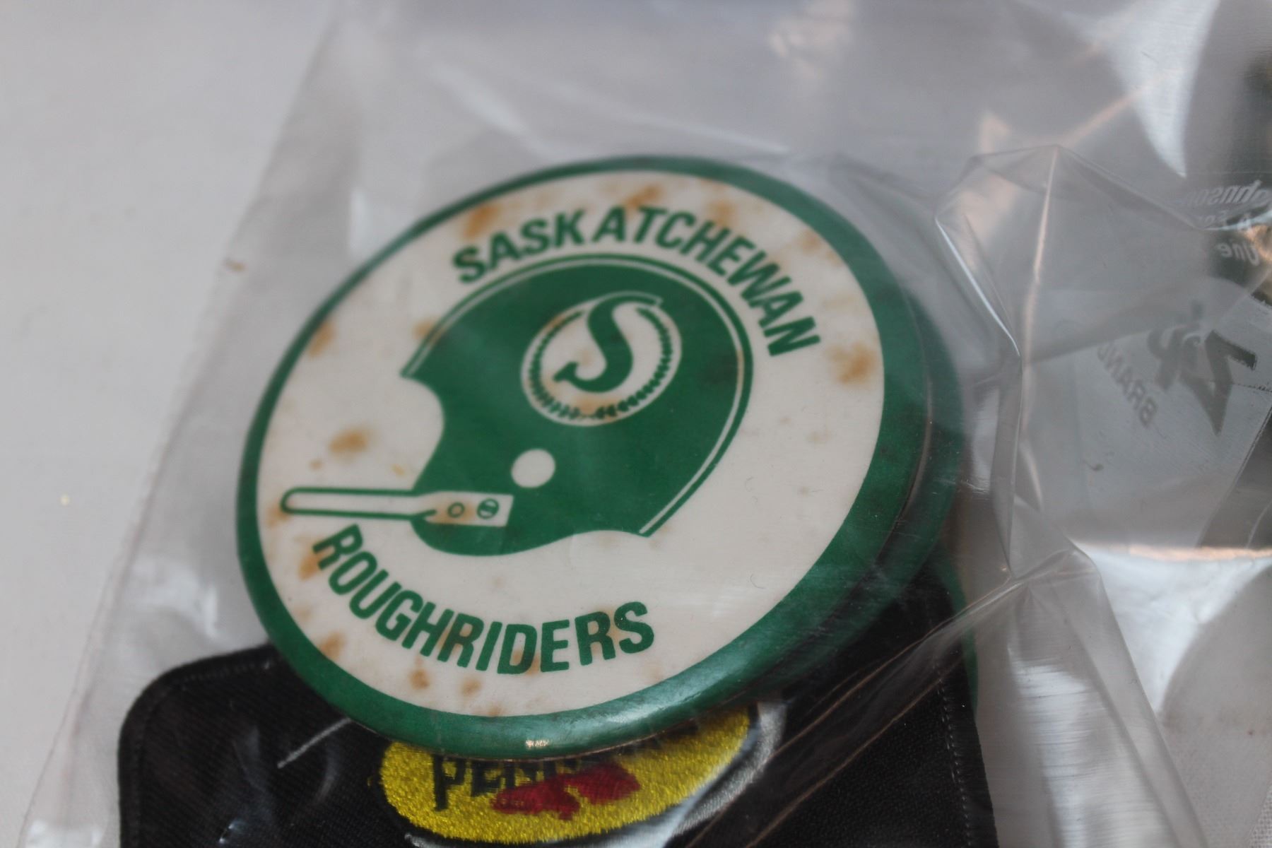 misc. Items; baby book, city landscape photos, Saskatchewan rough rider buttons