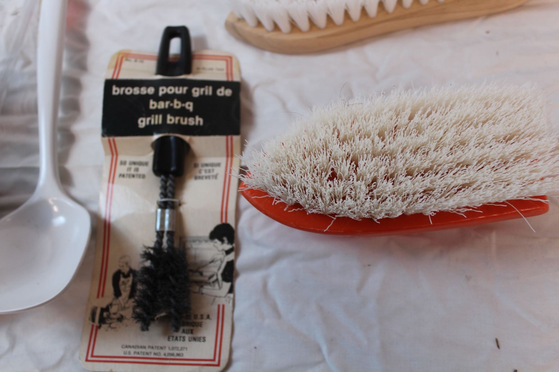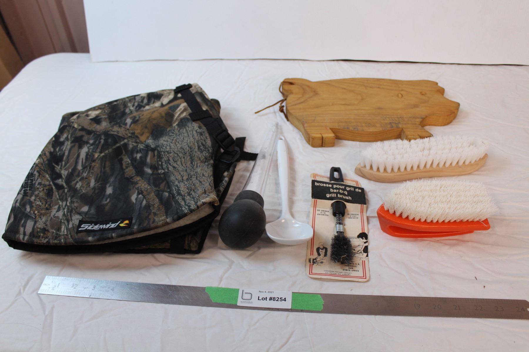 misc. Items; wooden pig, cleaning brushes, turkey baster