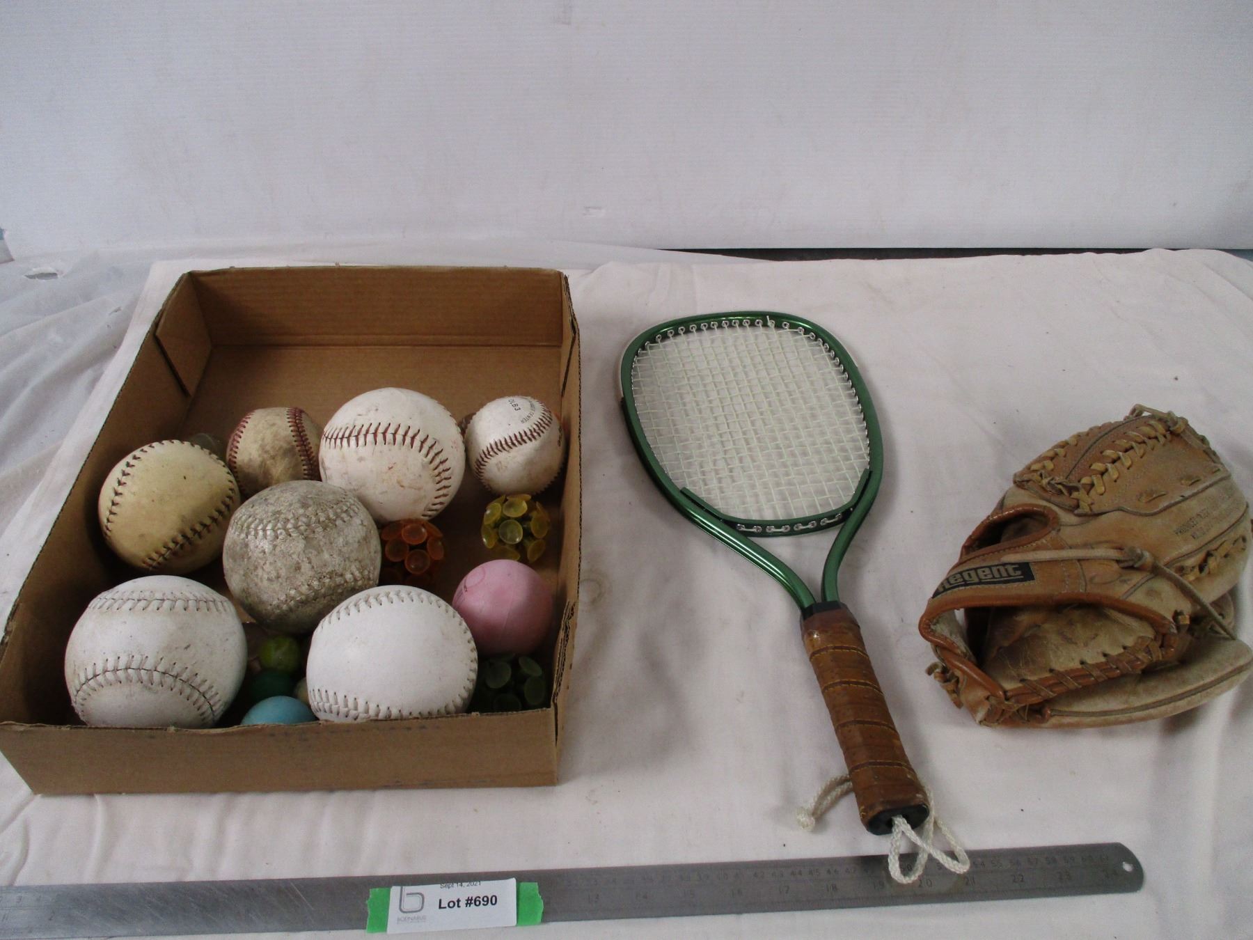 rachet, baseballs, ball glove