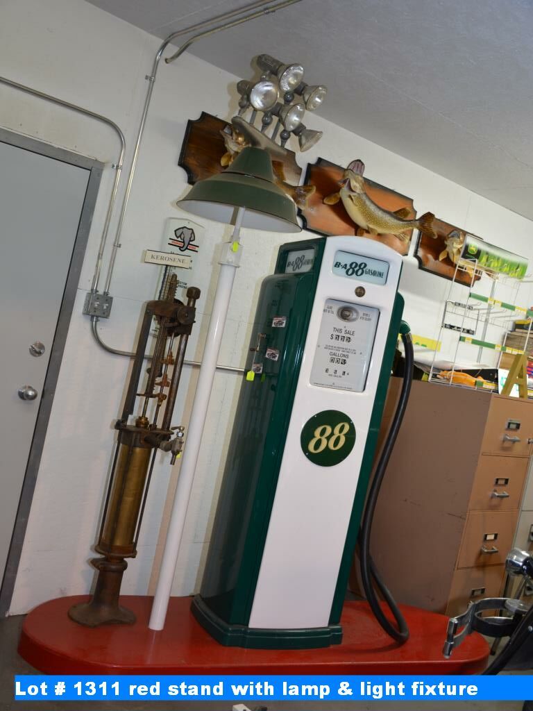 red stand with lamp & light fixture (kerosene pump and gas bowser not included)