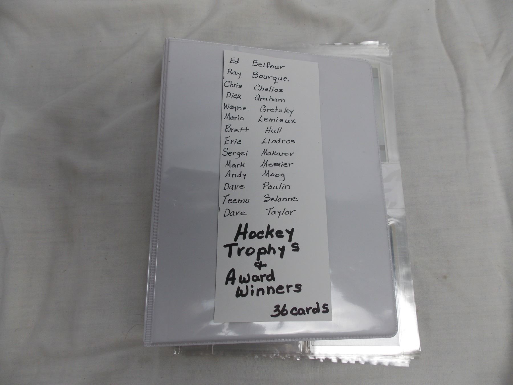 small binder of trophy winner cards