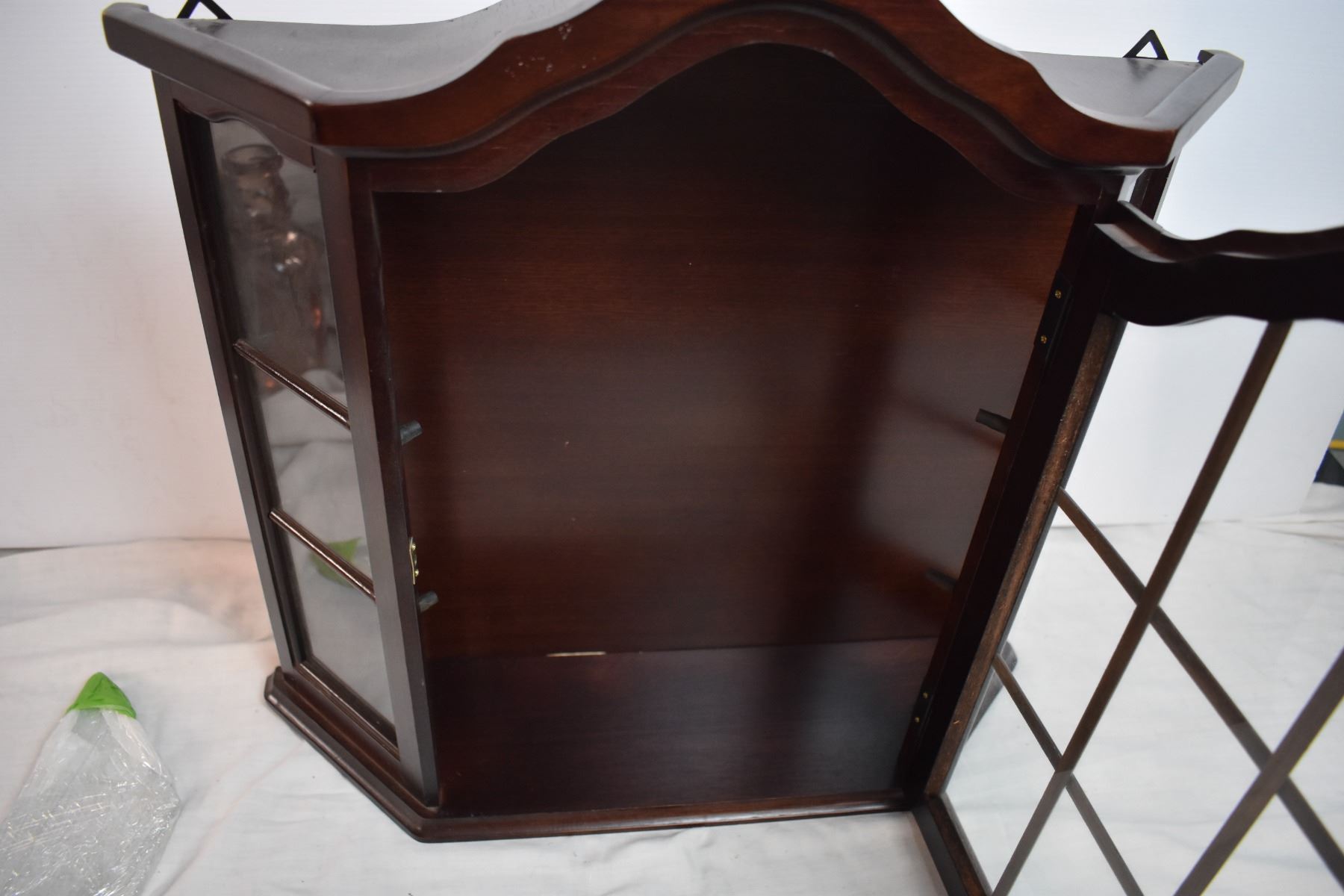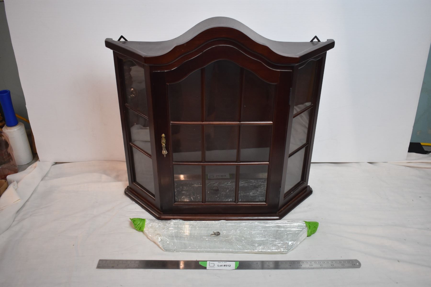 small wall hanging cabinet (21”x21”) with two glass shelves
