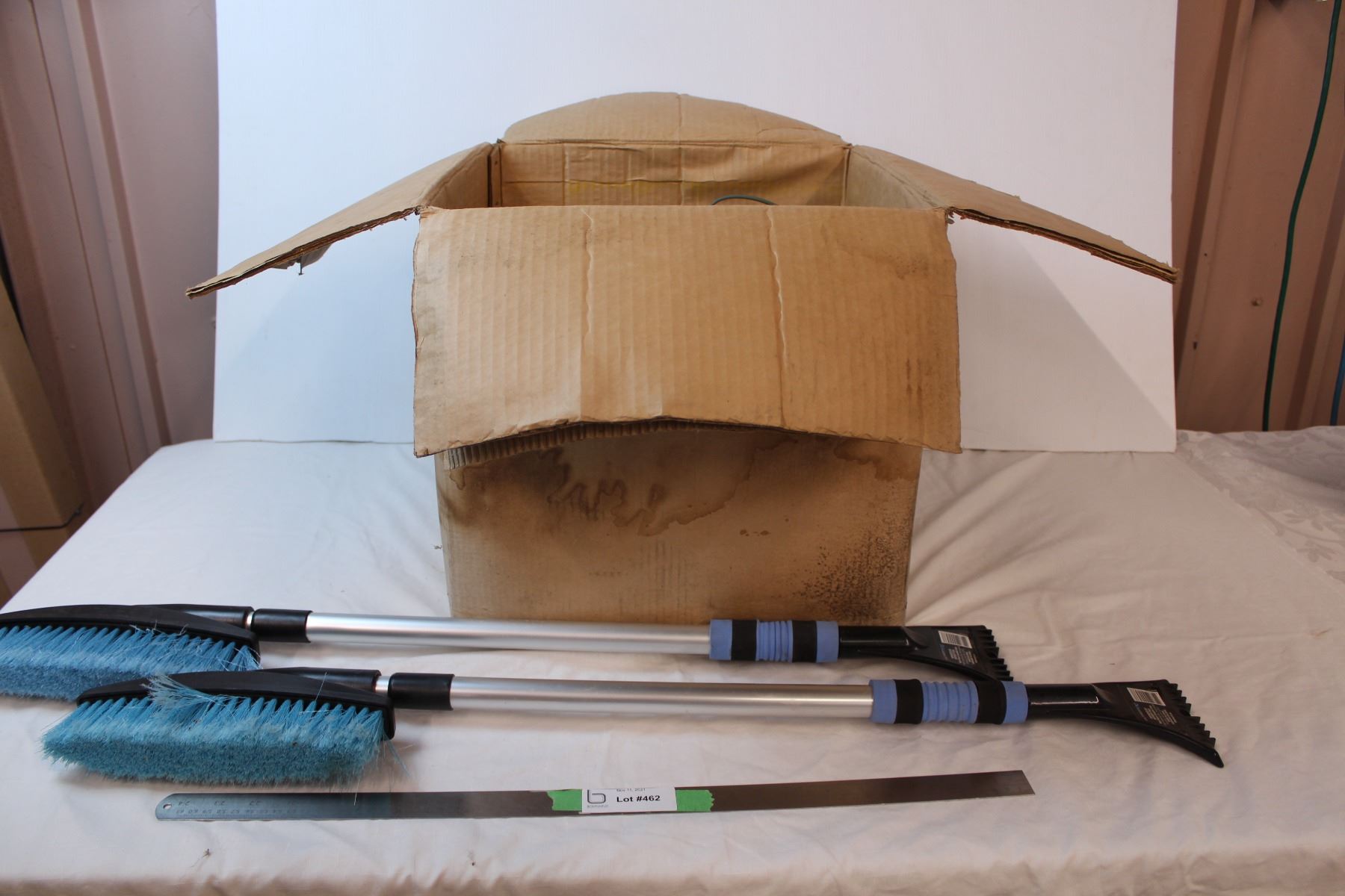*snow scraper brushes + box of old holiday lights