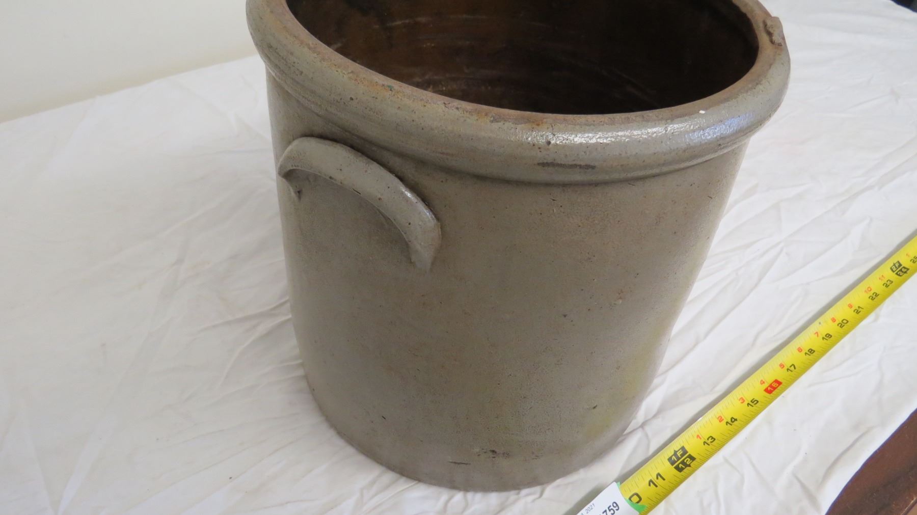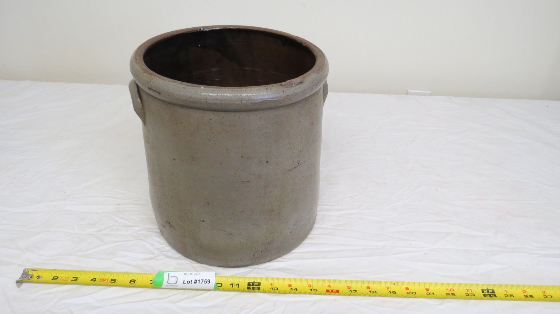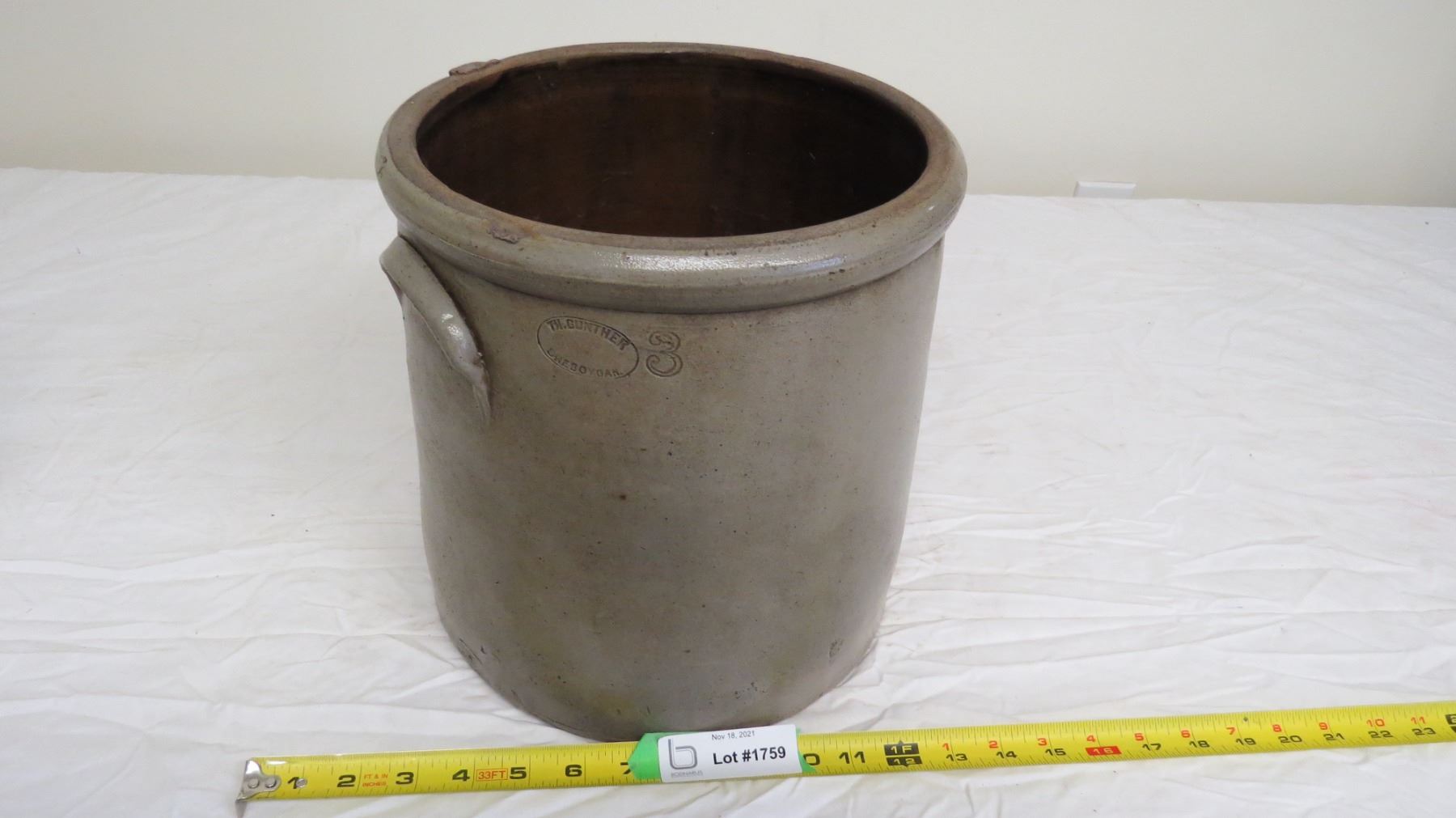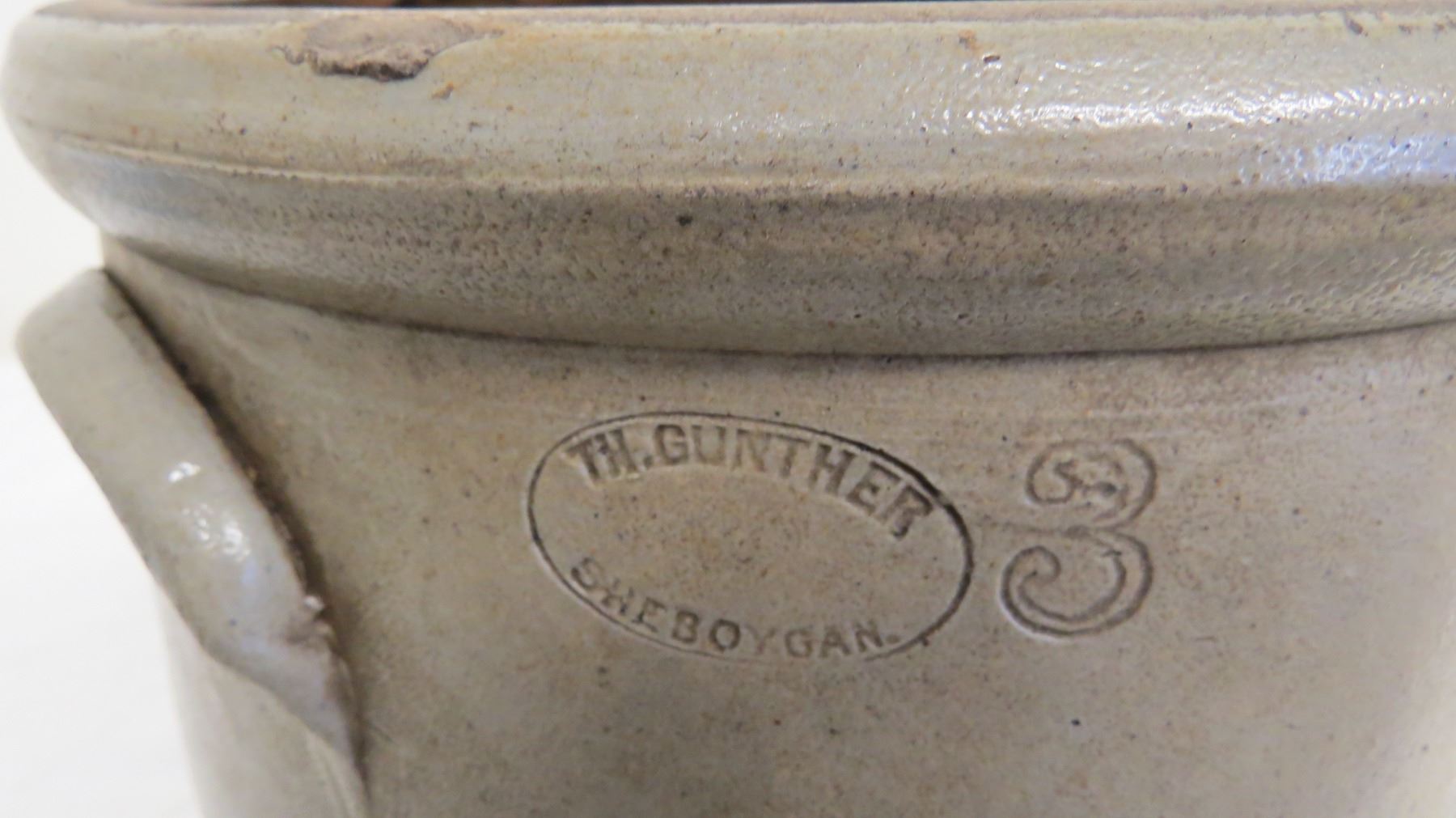 stoneware crock(no lid) 10" tall, 3 gallon TH gunther sheboygan - salt glaze side handles
