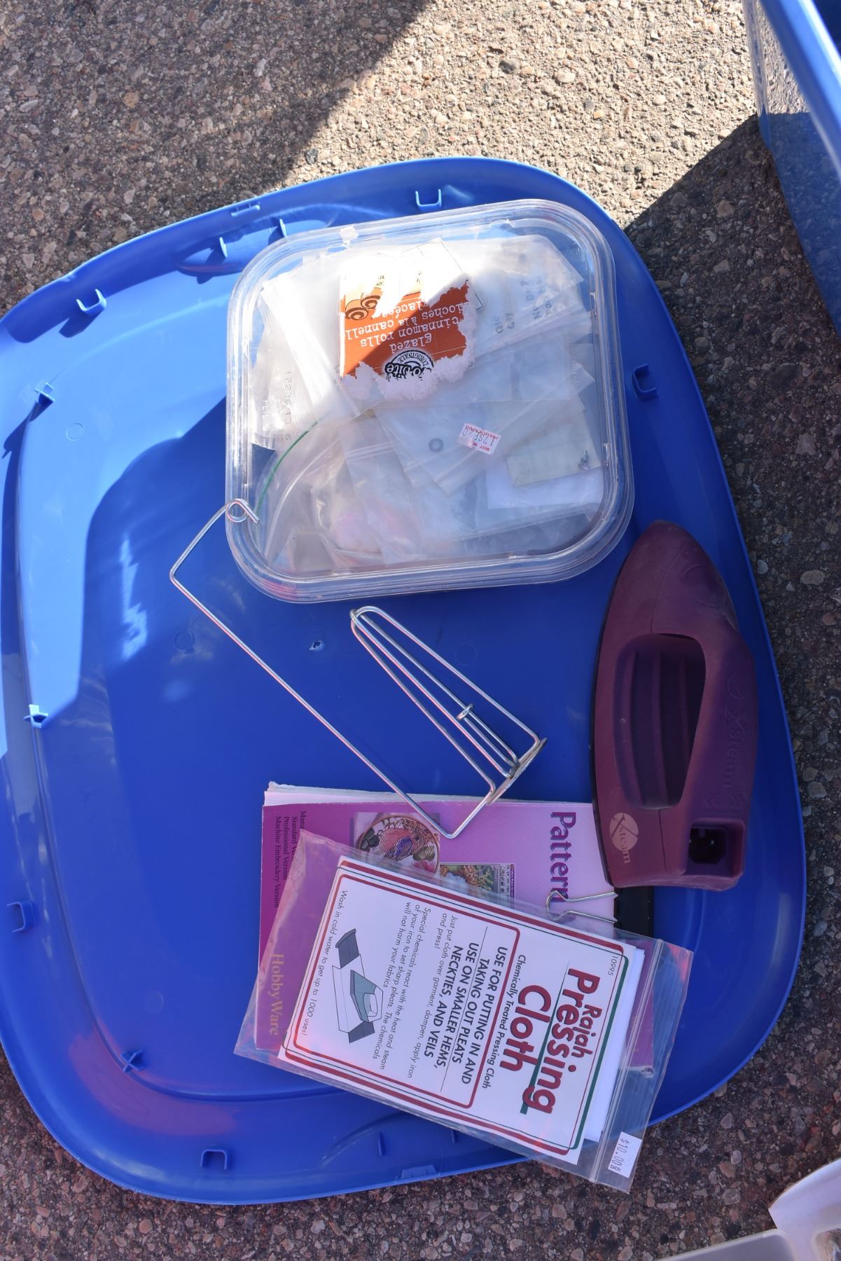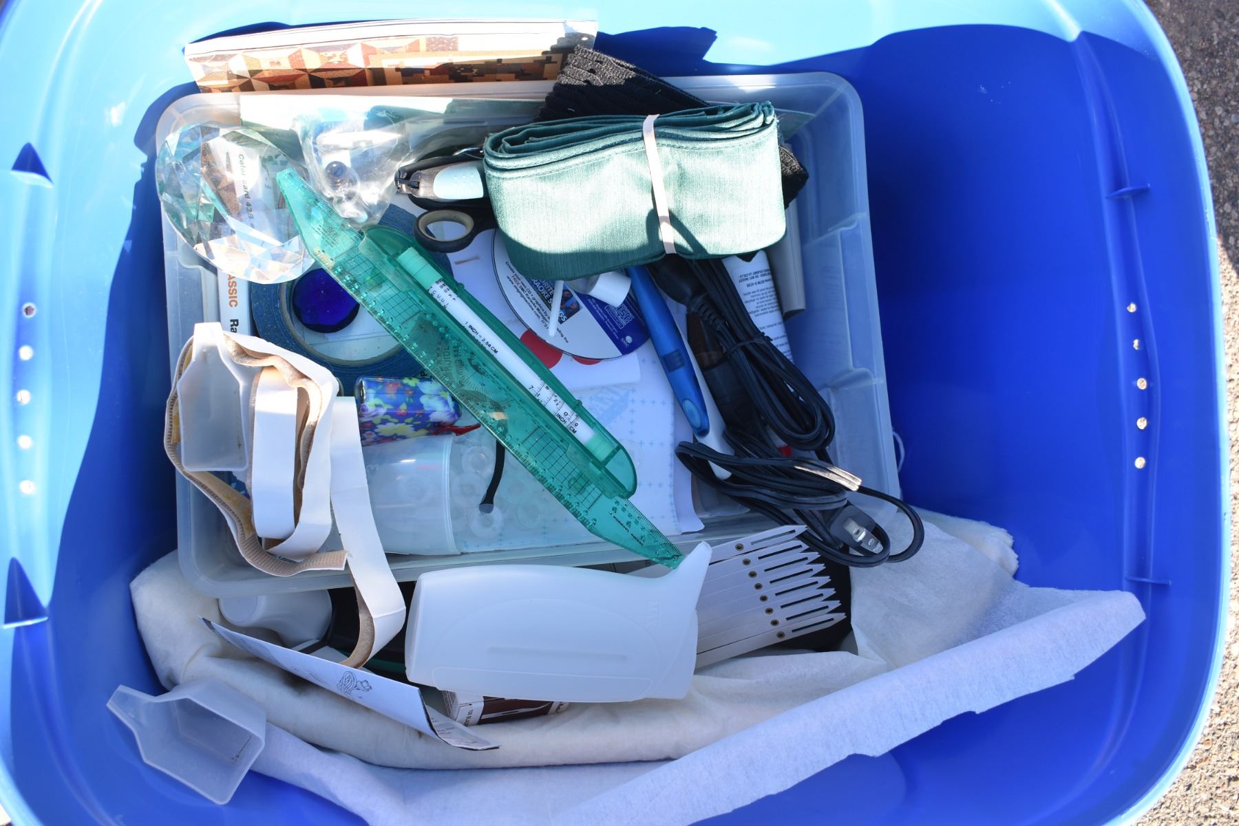 tote with sewing supplies