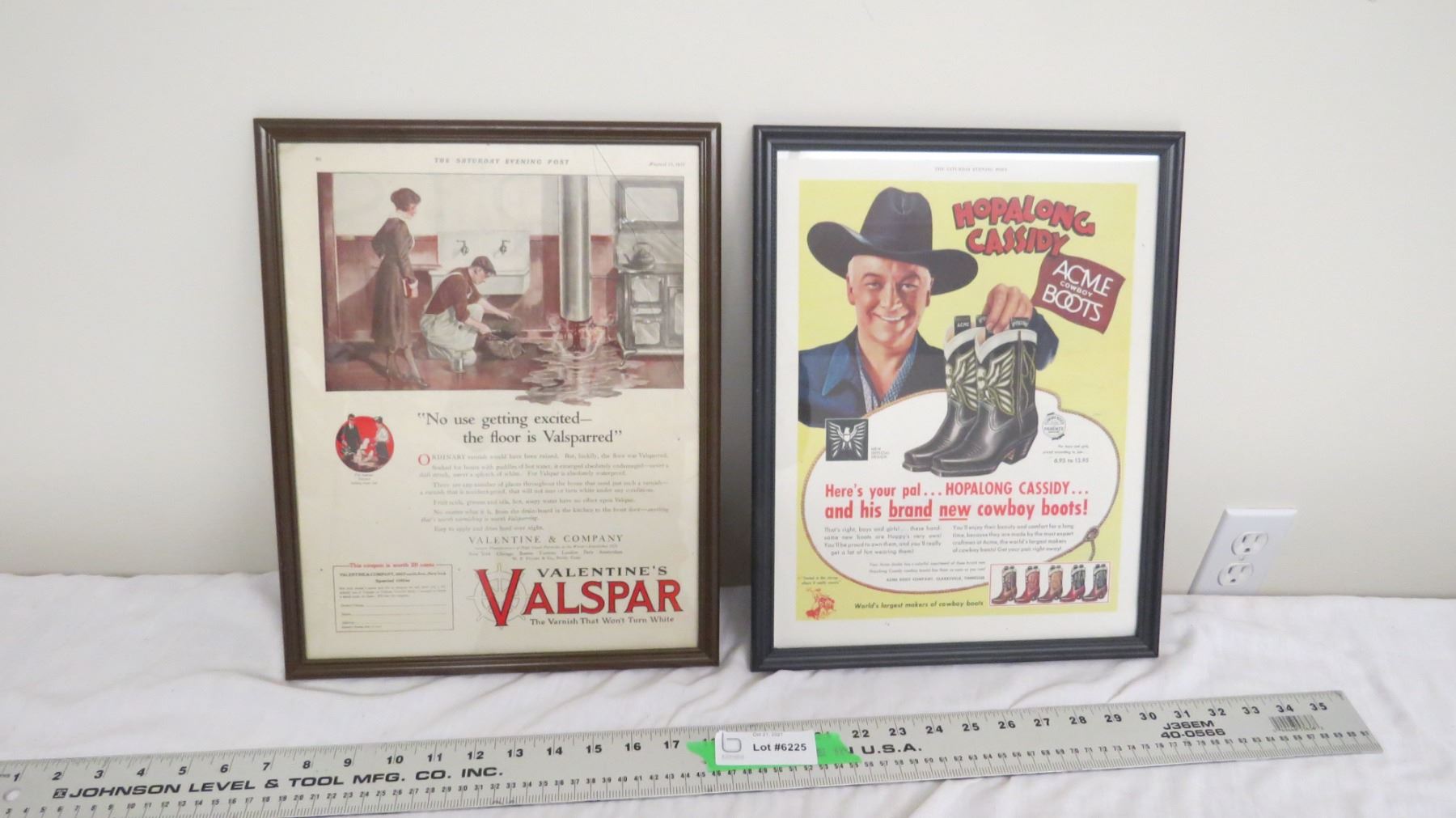 vintage ads in frame 11.75x14.75 (1 glass is cracked)