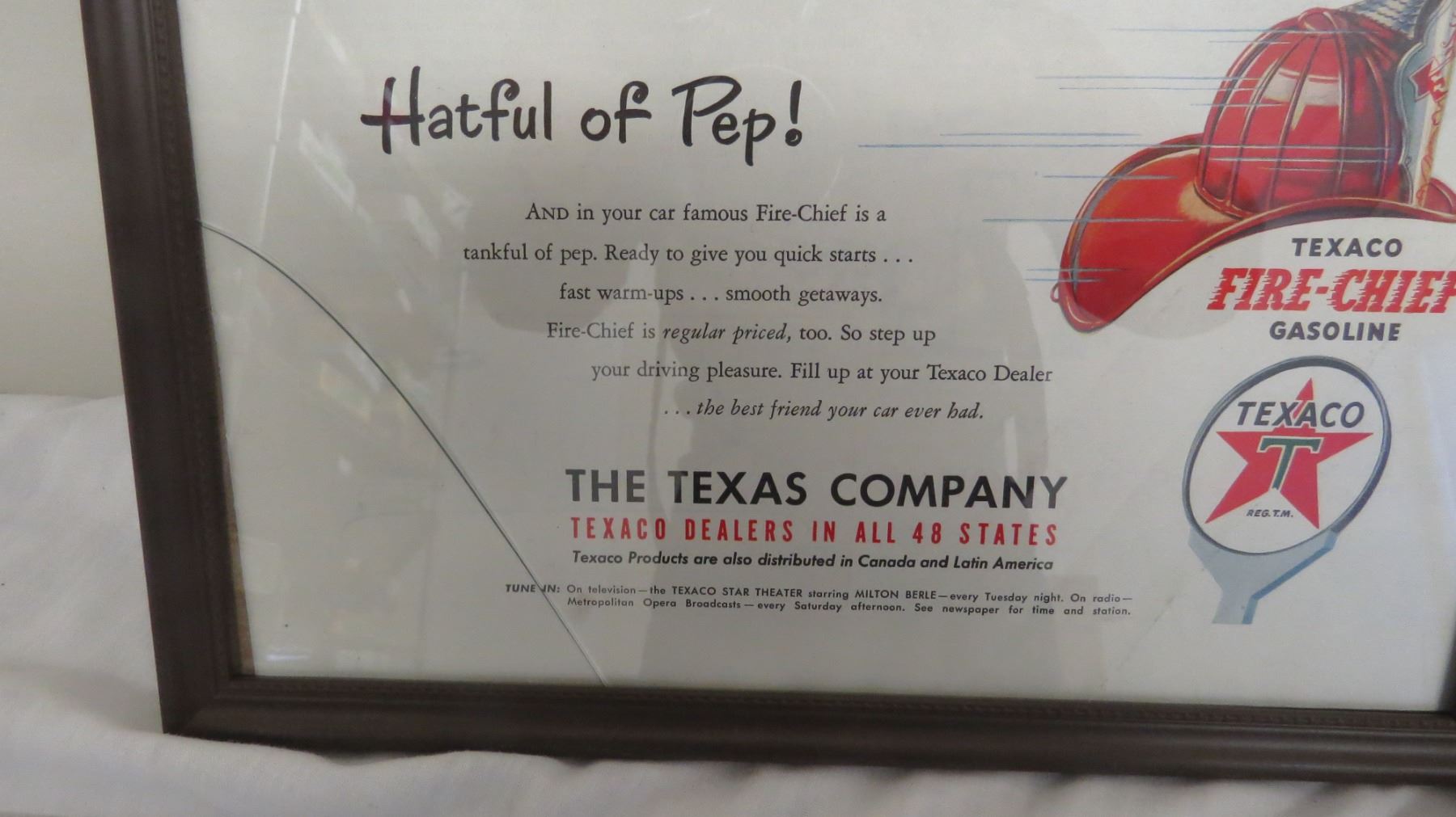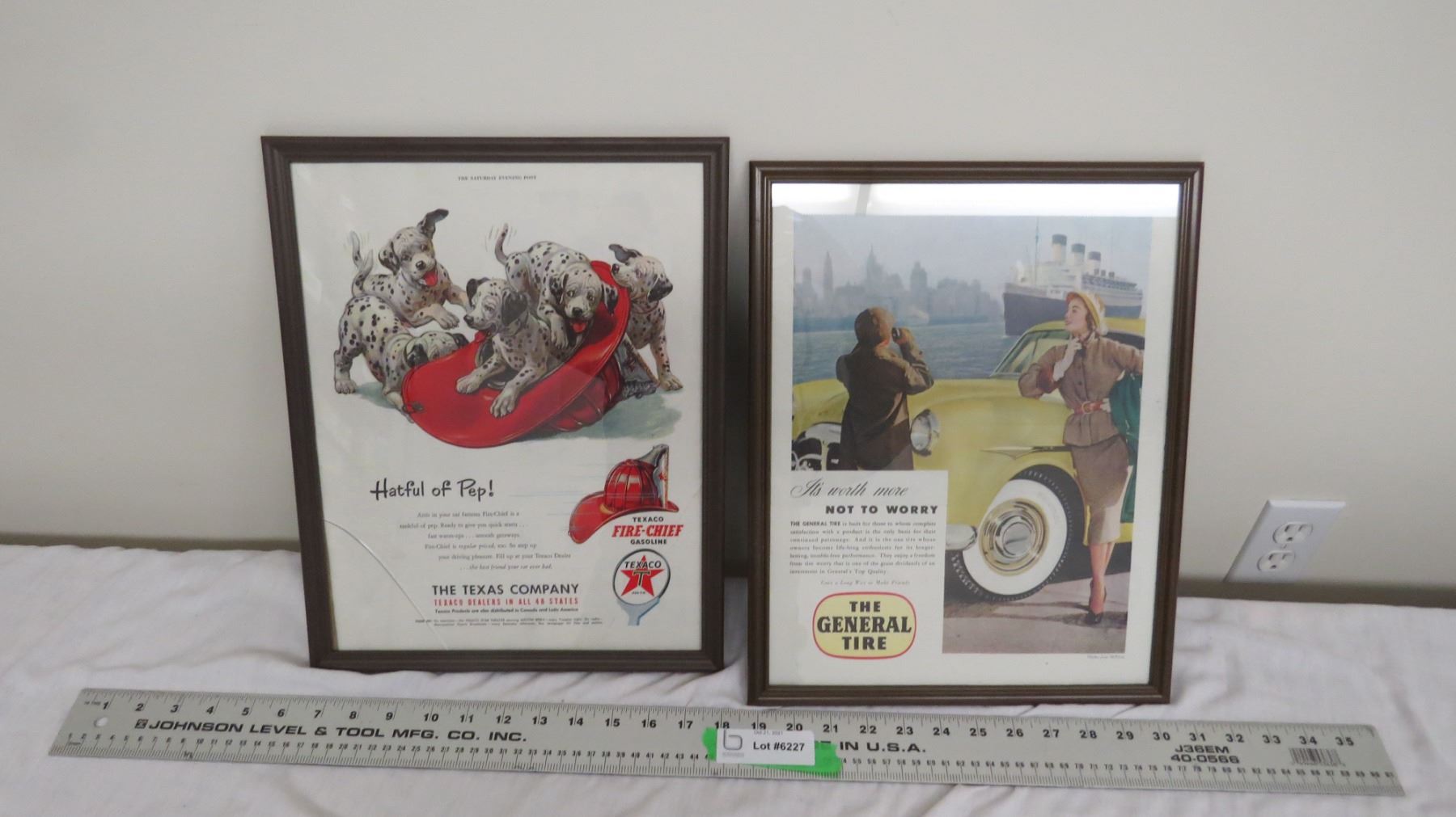 vintage texaco + General tire ads in frame 11.75x14.75 ( 1 glass in cracked)
