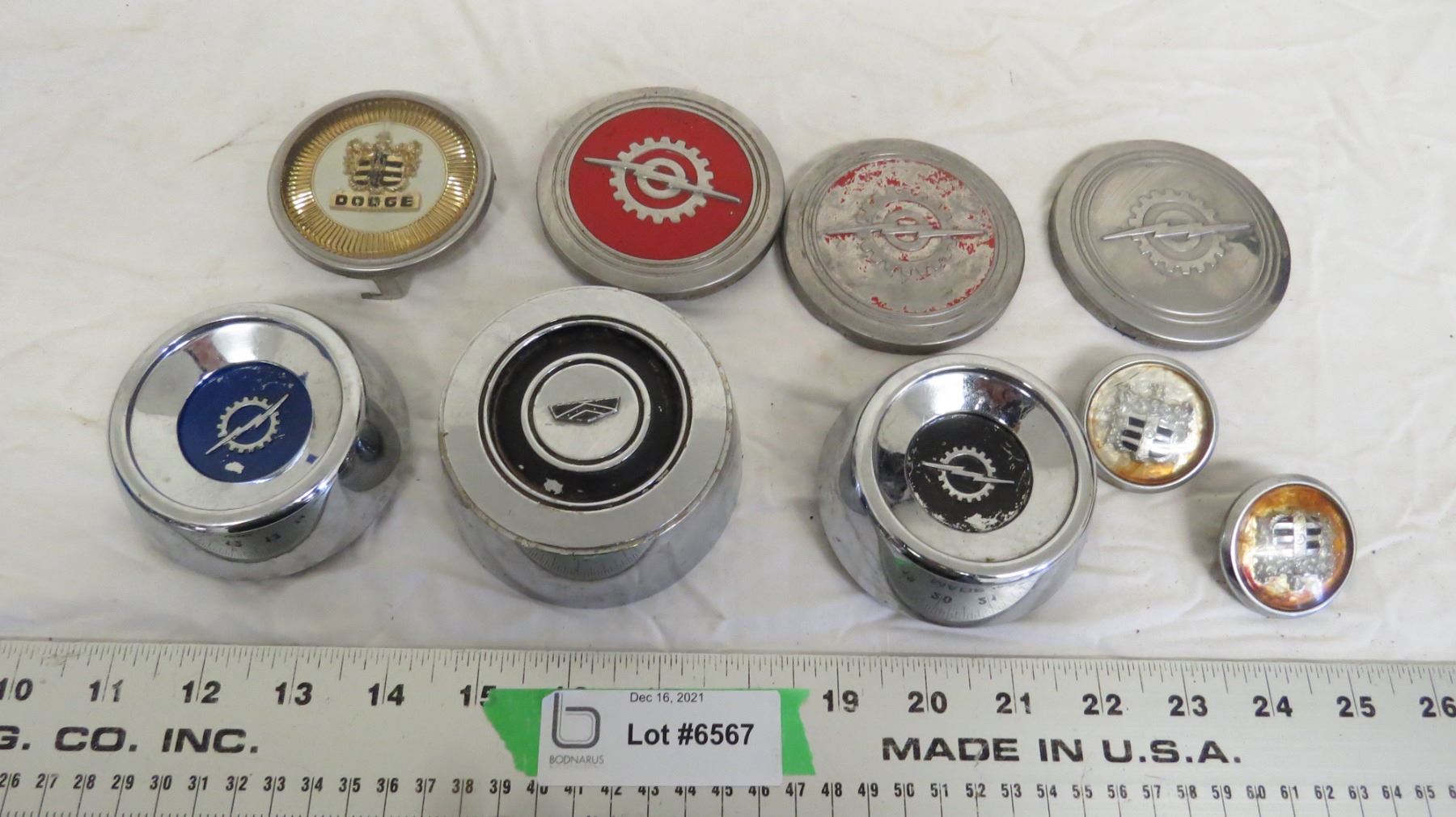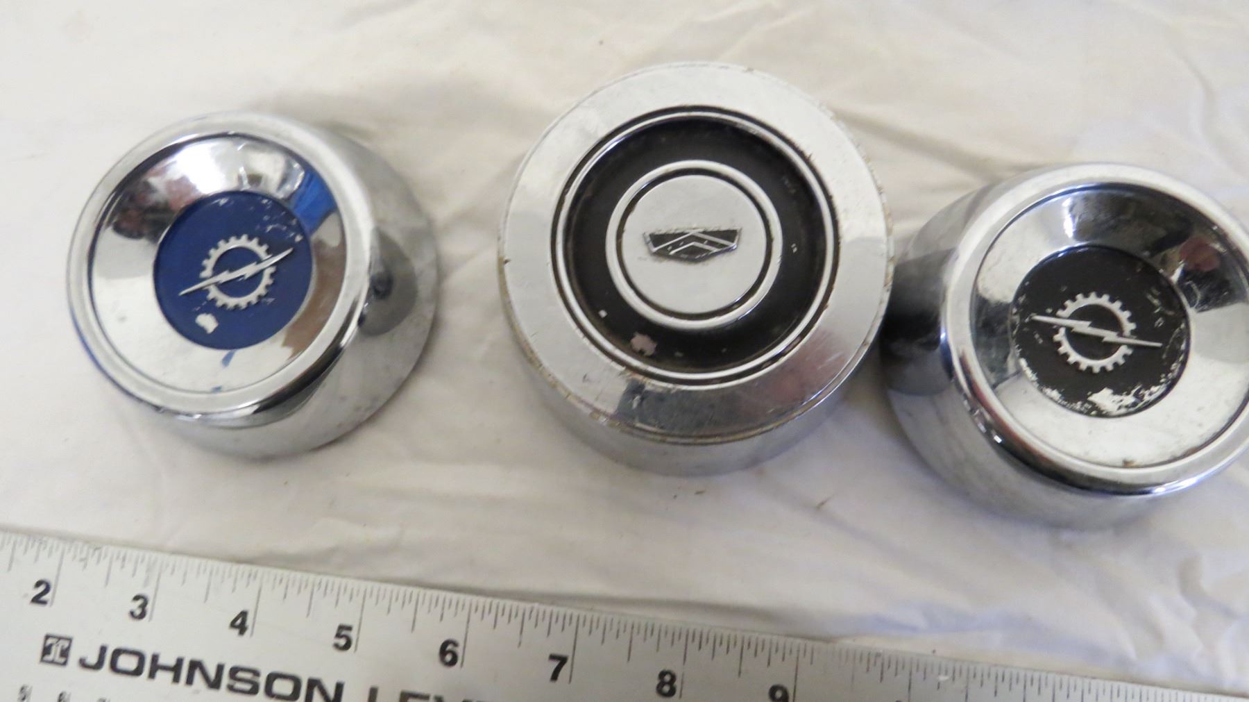 vintage vehicle (horn buttons?) + plastic center caps?